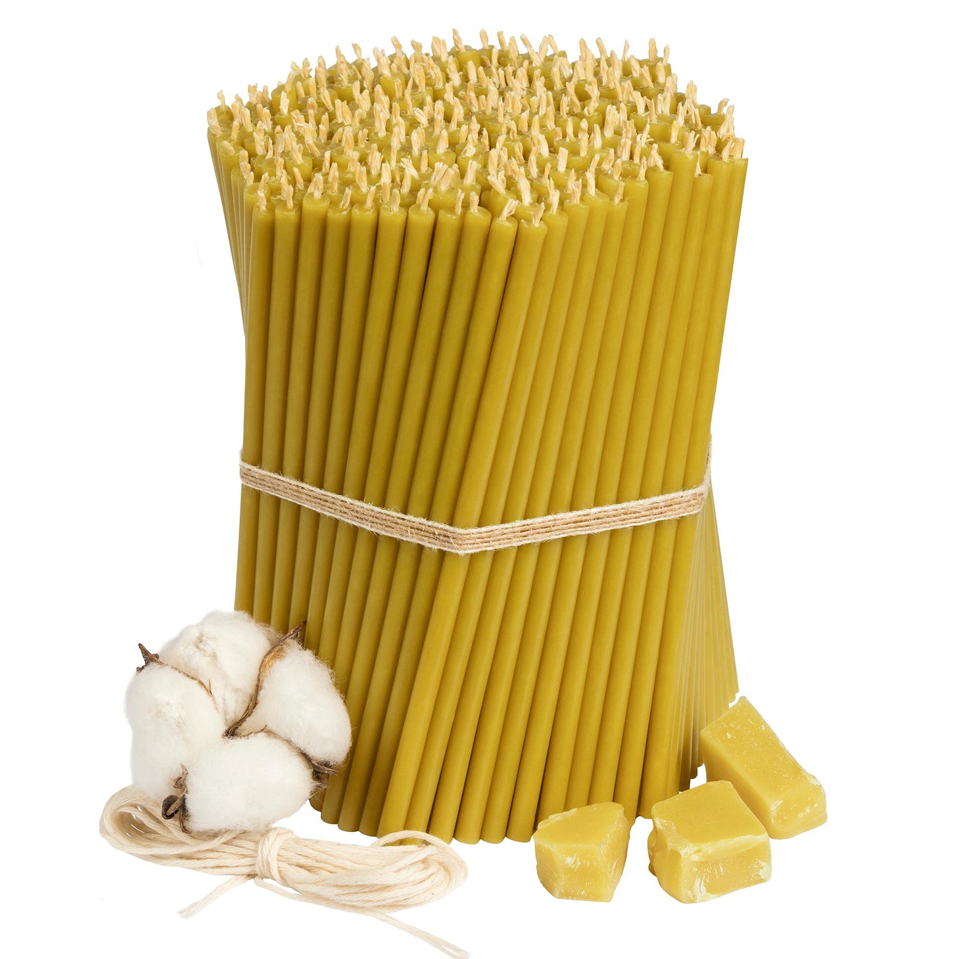 Diveevo Church Beeswax Candles №140 - Amber 350 pcs. I high-quality ritual candles L-16 cm Ø-5.0 mm I 30 min burning time in honey yellow I 1 kg thin candles drip- and smoke-free.