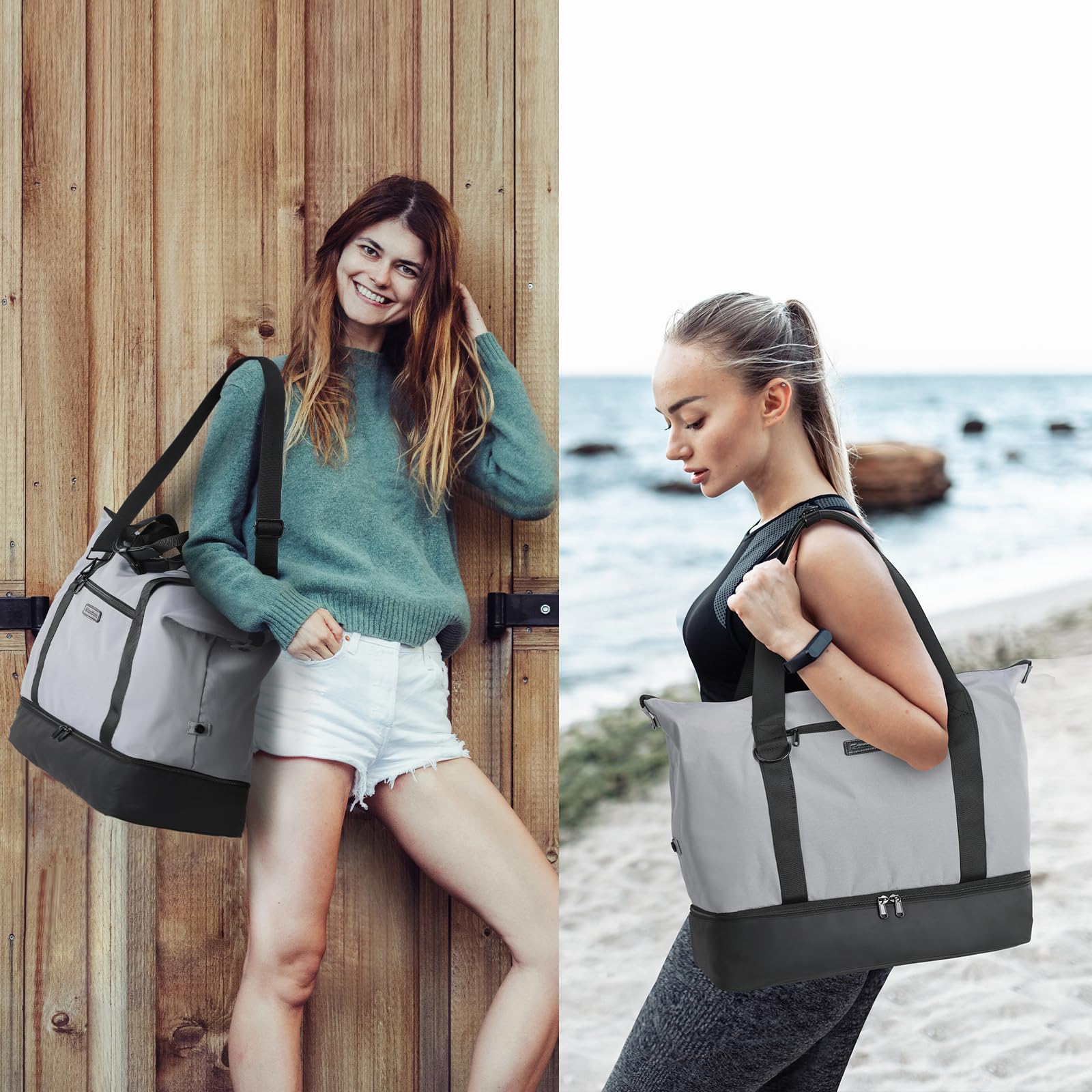 Versatile Use: Suitable as a sports bag, travel bag, carry-on, swim bag, gym bag, weekender bag, training bag, fitness bag, hospital bag, sauna bag. For short trips, weekend getaways, fitness, swimming, yoga, overnights, picnics, saunas, spas, baths."