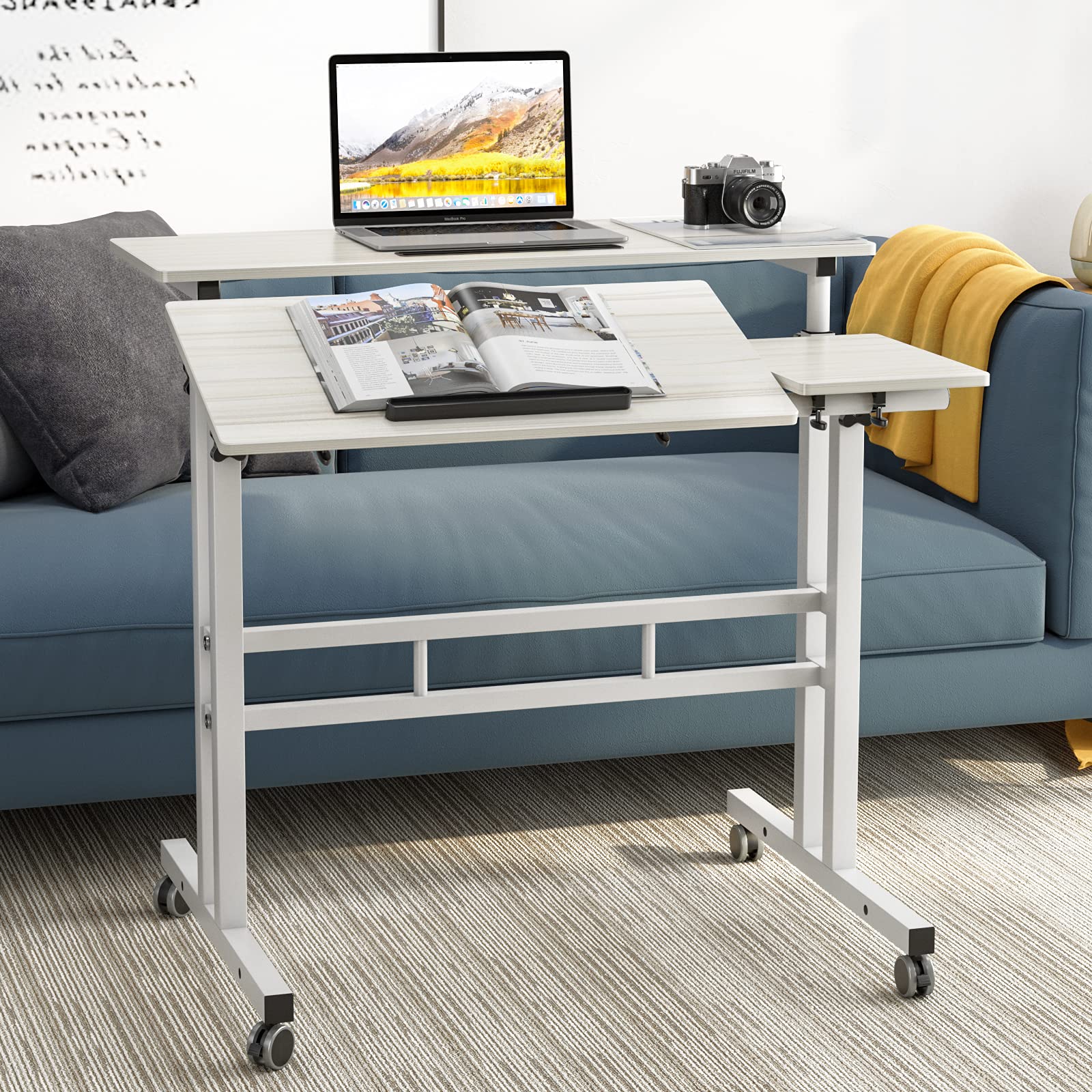 "Multifunctional computer desk - It can be used as a standing desk, rolling bedside table, side table with wheels, tablet stand and phone stand, book stand, etc.",