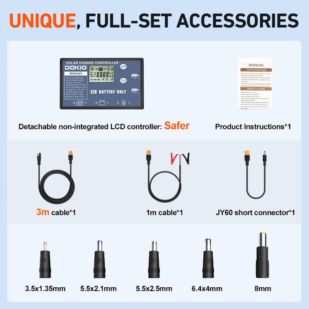 DOKIO Folding Solar Panel 160W Monocrystalline Portable Solar Module Camping Solar System Complete Set (Solar Charge Controller+PV Cable+5 DC Adapter+2 USB Output)