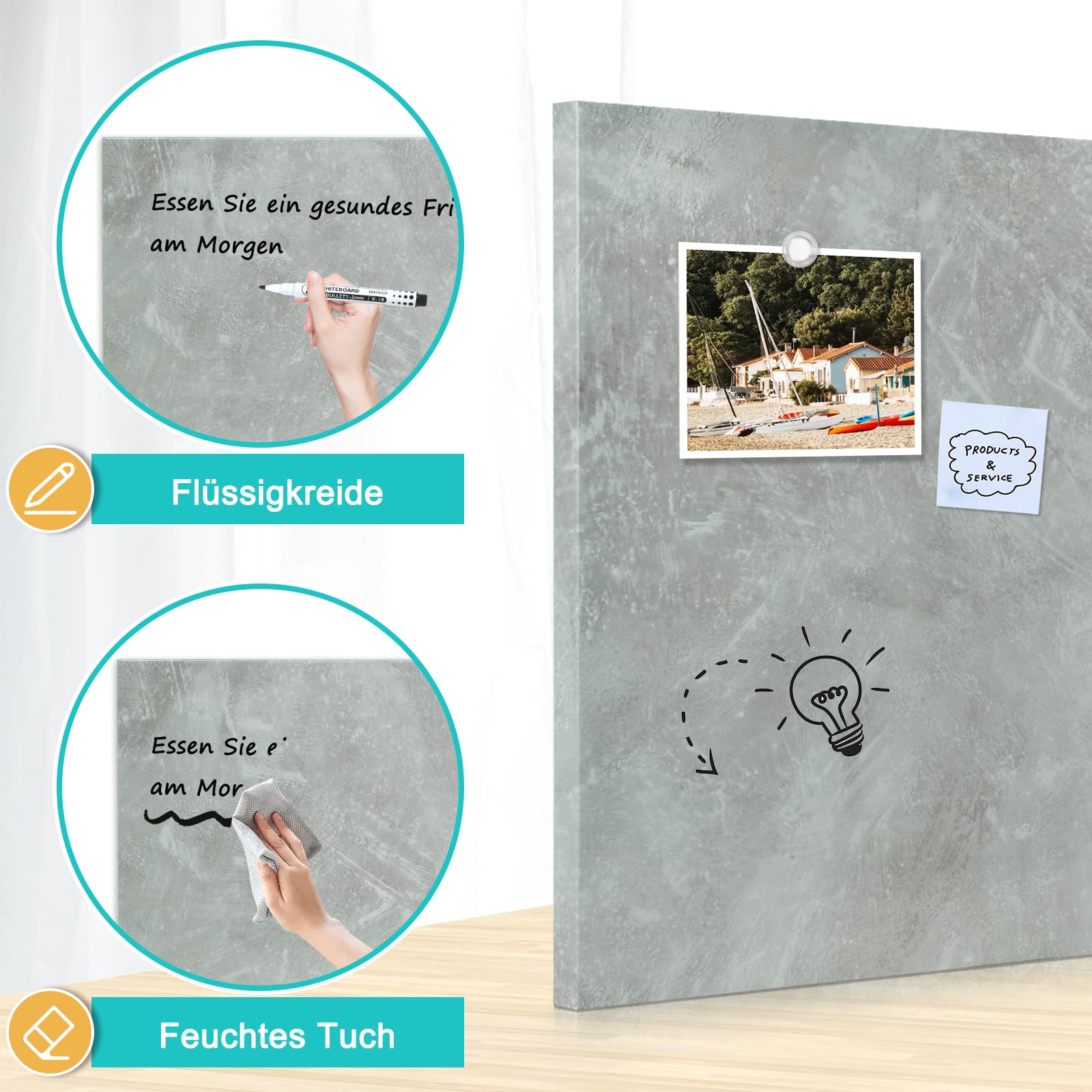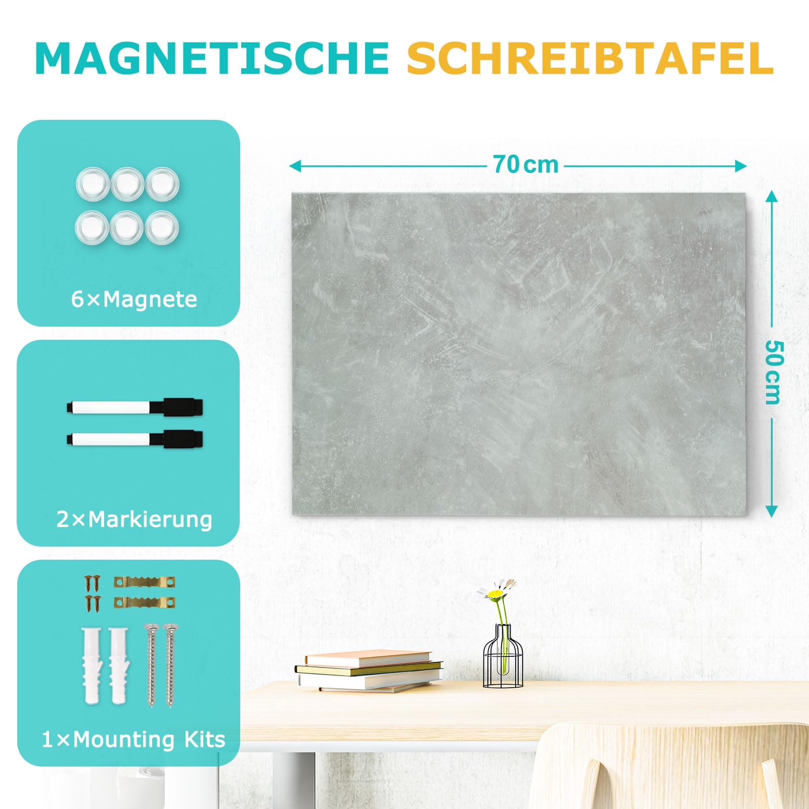 ["Magnetic surface: Experience the convenience of our magnetic whiteboard, securely holding your important notes and memos in place. Keep your workspace organized with this whiteboard","Easy to write and clean: The smooth surface of our wall-mounted magnetic board allows you to write, draw, and easily erase with a dry cloth or tissue. No ghosting or smudging. You also receive 2 free magnetic eraser pens. Say goodbye to messy whiteboards or smudged markers!","Stylish marble print: Our whiteboard not only offers functionality but also adds a touch of elegance to any room. The smooth surface with marble print serves as a decorative element and seamlessly blends into any decor style","Easy to install: Mounting our magnetic board is a breeze. With the included mounting hardware and step-by-step instructions, it attaches to the wall in no time. Effortlessly transform any space into a productive and organized environment","Versatile use: Our magnetic whiteboard is perfect for various settings. Whether in the office, classroom, kitchen, or even home office, it provides an ideal platform for brainstorming, planning, teaching, and organization. Upgrade your workspace with our magnetic whiteboard and experience the perfect combination of functionality, style, and convenience"]