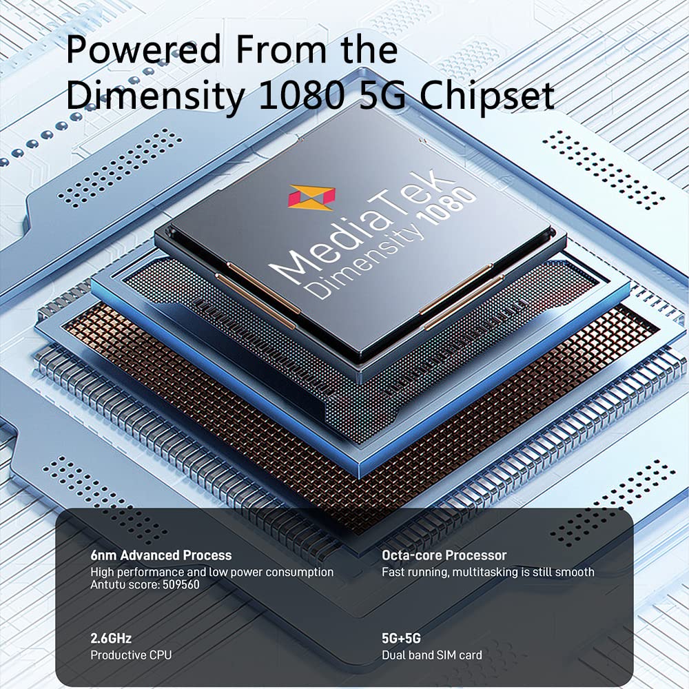 "🚀 【Dimensity 1080 Octa Core, 12GB RAM and 8 Virtual RAM with 256GB ROM, Android 12】 Transform your experience of speed and performance with the state-of-the-art Dimensity 1080 chipset. With 12 GB RAM and 8 Virtual RAM and 256 GB ROM storage, the Android 12 phone excels in multitasking. 2TB internal storage and maximum expandable storage can reach up to 1T storage, from running games and apps to keeping photos at hand.",