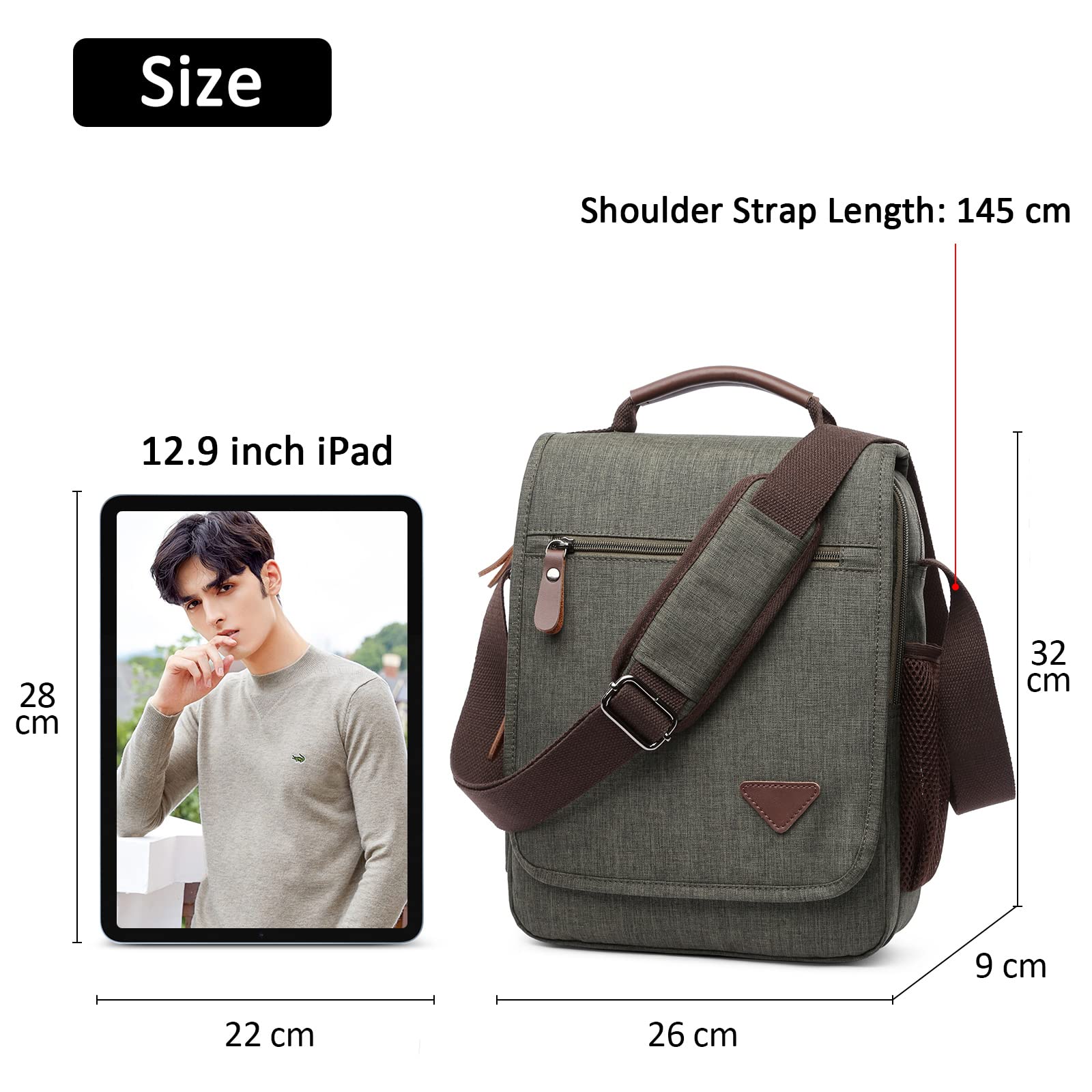 DORRISO fashion shoulder bag for men, elegant shoulder bag for 12.9 inch laptop, messenger bag for casual travel and school. Green men's shoulder bag.