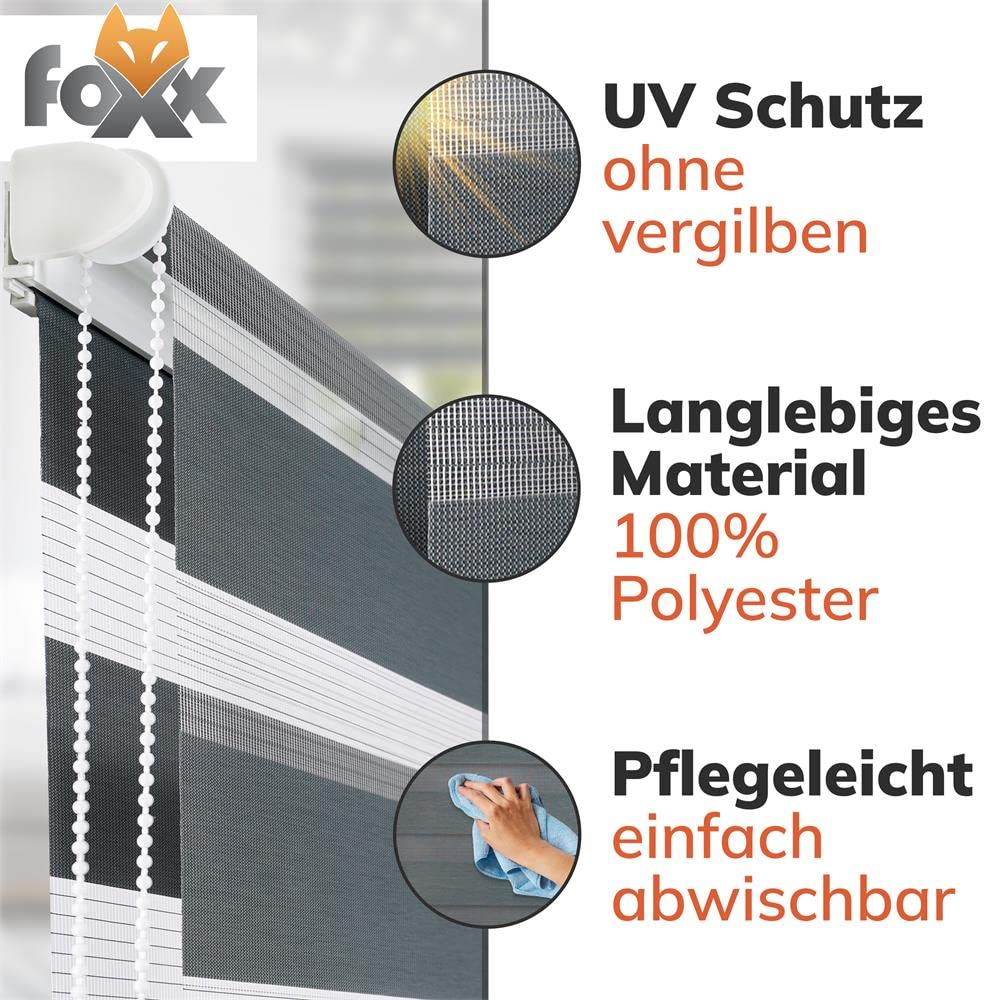 ["With the practical chain drive, you can control the light as desired - from semi-transparent to opaque - perfect for indoor blinds that offer the ideal amount of light in any situation.","By alternating between transparent and dense stripes, this double roller blind replaces traditional window curtains, kitchen curtains, or shutters - for flexible comfort around the clock.","Whether as blinds for balcony doors, kitchen windows, living rooms, or bathrooms - this indoor roller blind for every window not only provides privacy but also stylish window decoration with a modern look.","The clever fabric panels help keep rooms pleasantly tempered - ideal for reducing heating and cooling costs while enhancing the visual appeal of your indoor window blinds.","Quickly and securely fastened - Includes accessories for clamp fixing, wall mounting, and ceiling mounting - for a fast, flexible, and uncomplicated installation of your indoor blinds."]