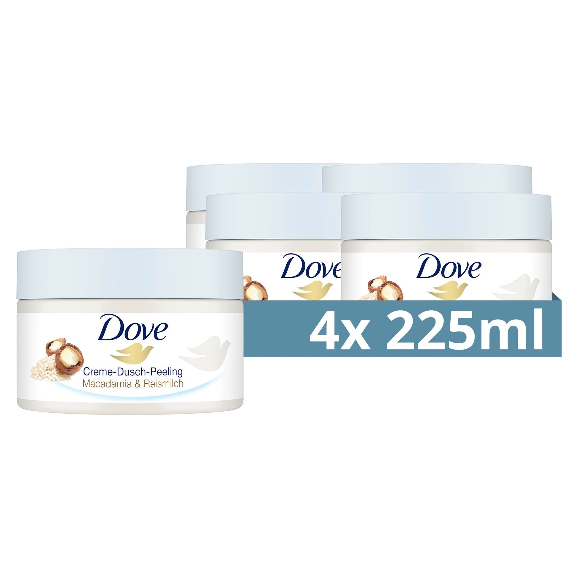 Dove Cream Shower Scrub Macadamia & Rice Milk Scrub Body Scrub for smooth skin Skincare with jojoba wax beads 4x 225 ml