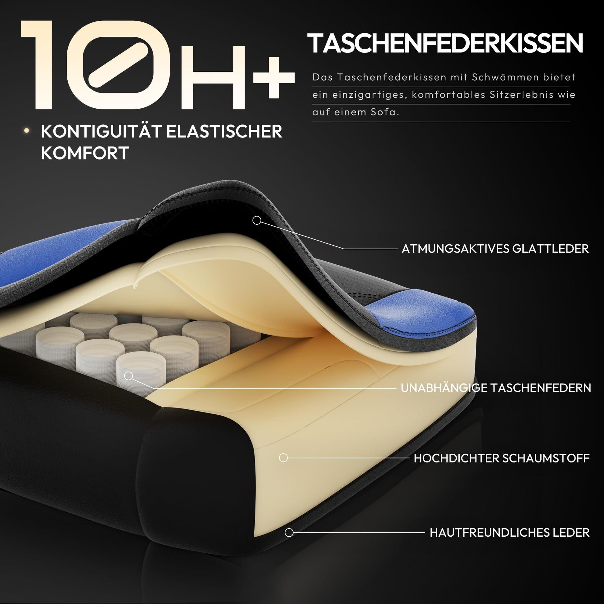 Dowinx Gaming Chair, Ergonomic Gamer Seat made of PU leather with lumbar support, massage function and wide backrest, up to 150 kg load capacity, Blue.