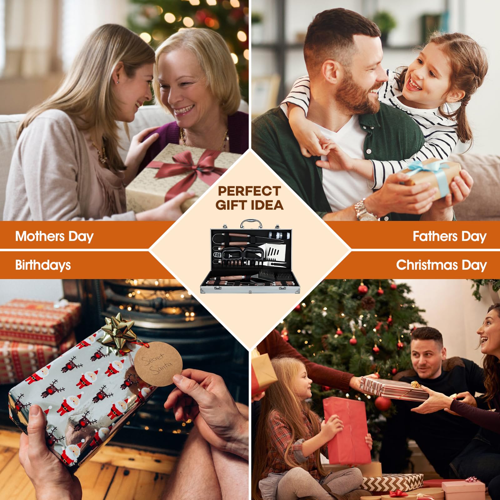 ["Perfect Gift for BBQ Lovers"] This personalized grill tool set is a great gift for him or her on birthdays, Christmas, Mother's Day, and Father's Day. The handle is beautiful and unique. Whether for a passionate grill lover or a camping enthusiast, this comprehensive accessory set is an ideal gift.