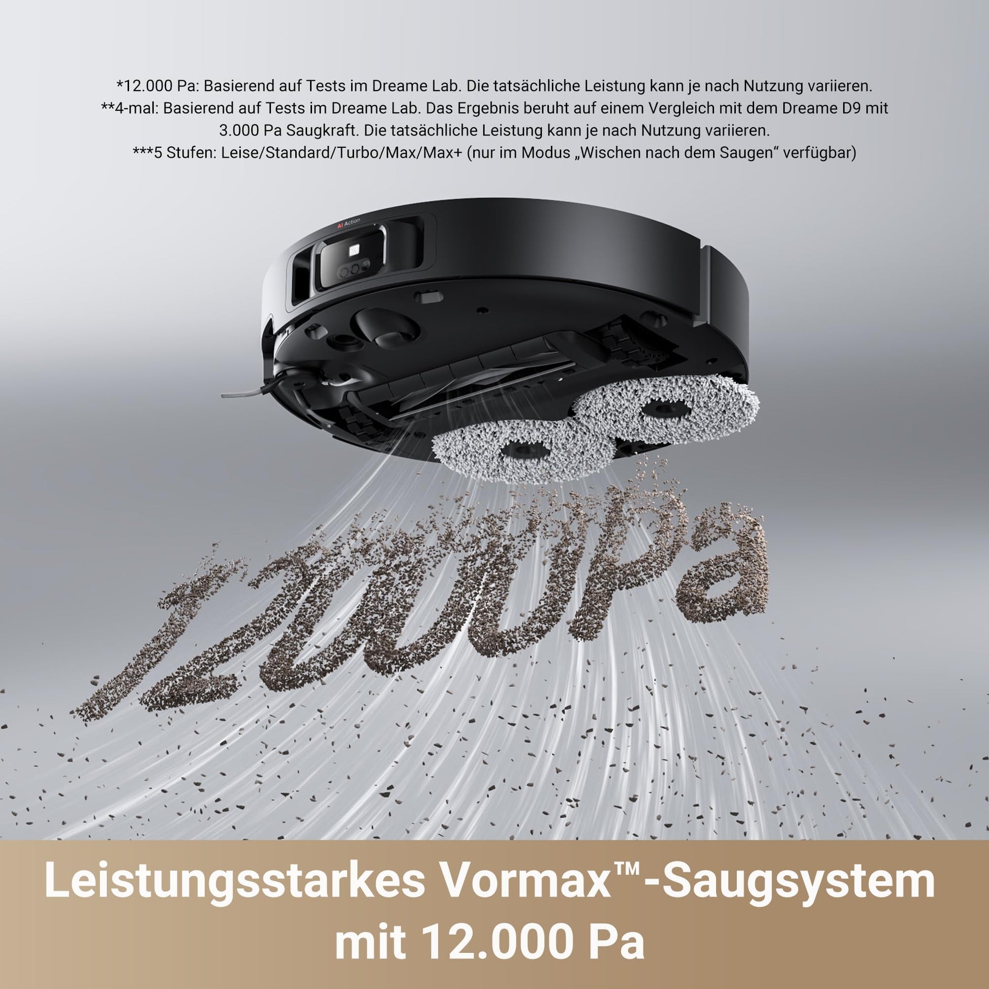 "Unmatched suction power: With an industry-leading suction power of 12,000 Pa, the X40 Master quickly removes dirt such as paper scraps, cat litter, dust, and hair, ensuring a thorough cleaning every time."