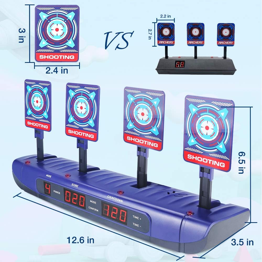 ["【2023 Shooting Target Upgrade】The electric target is suitable for Nerf N-Strike Elite, Nerf Mega, and Nerf Rival series blasters, as well as blasters from other brands. Far more functional and interactive than other monotonous targets. It needs to be operated with 3 "AA" batteries (not included).",