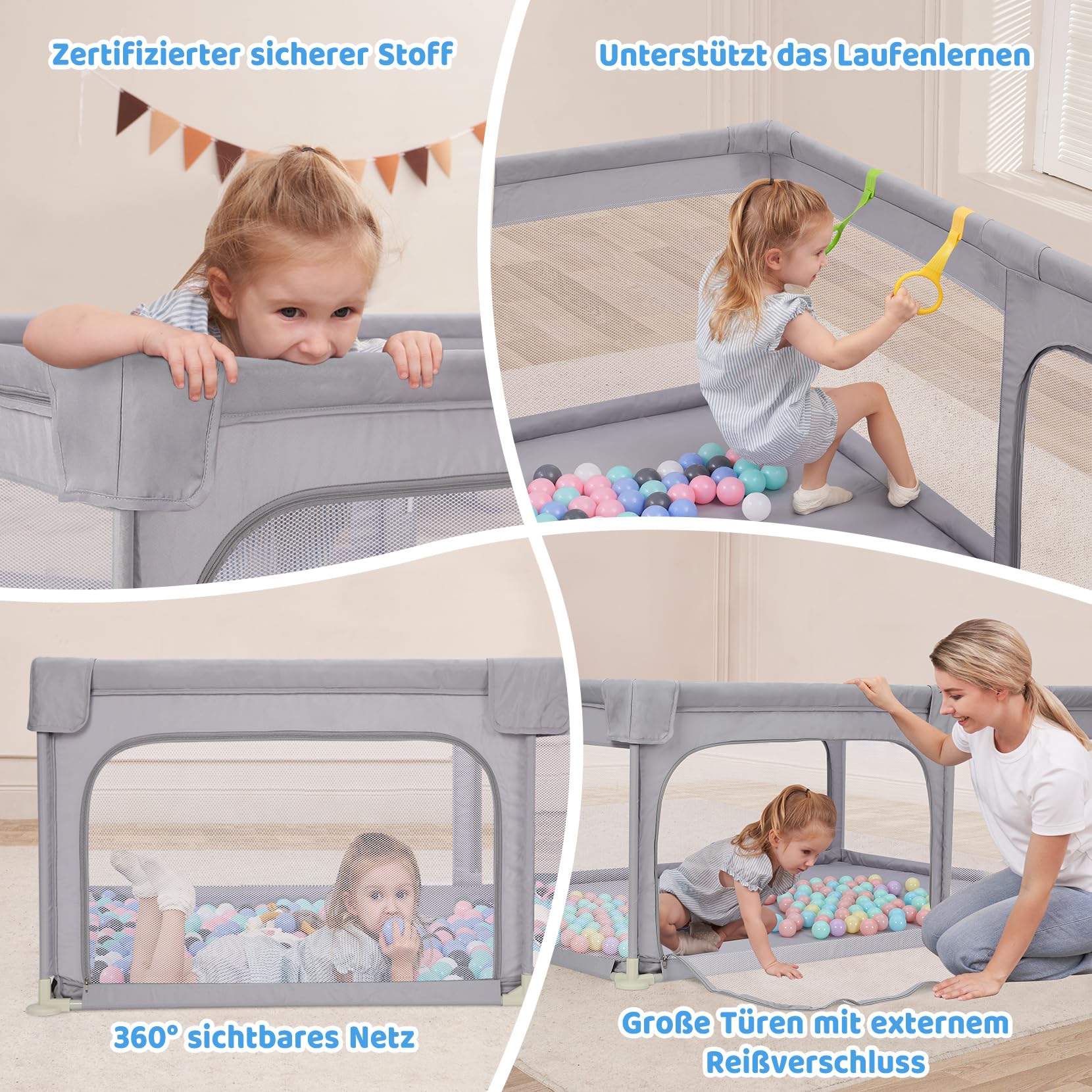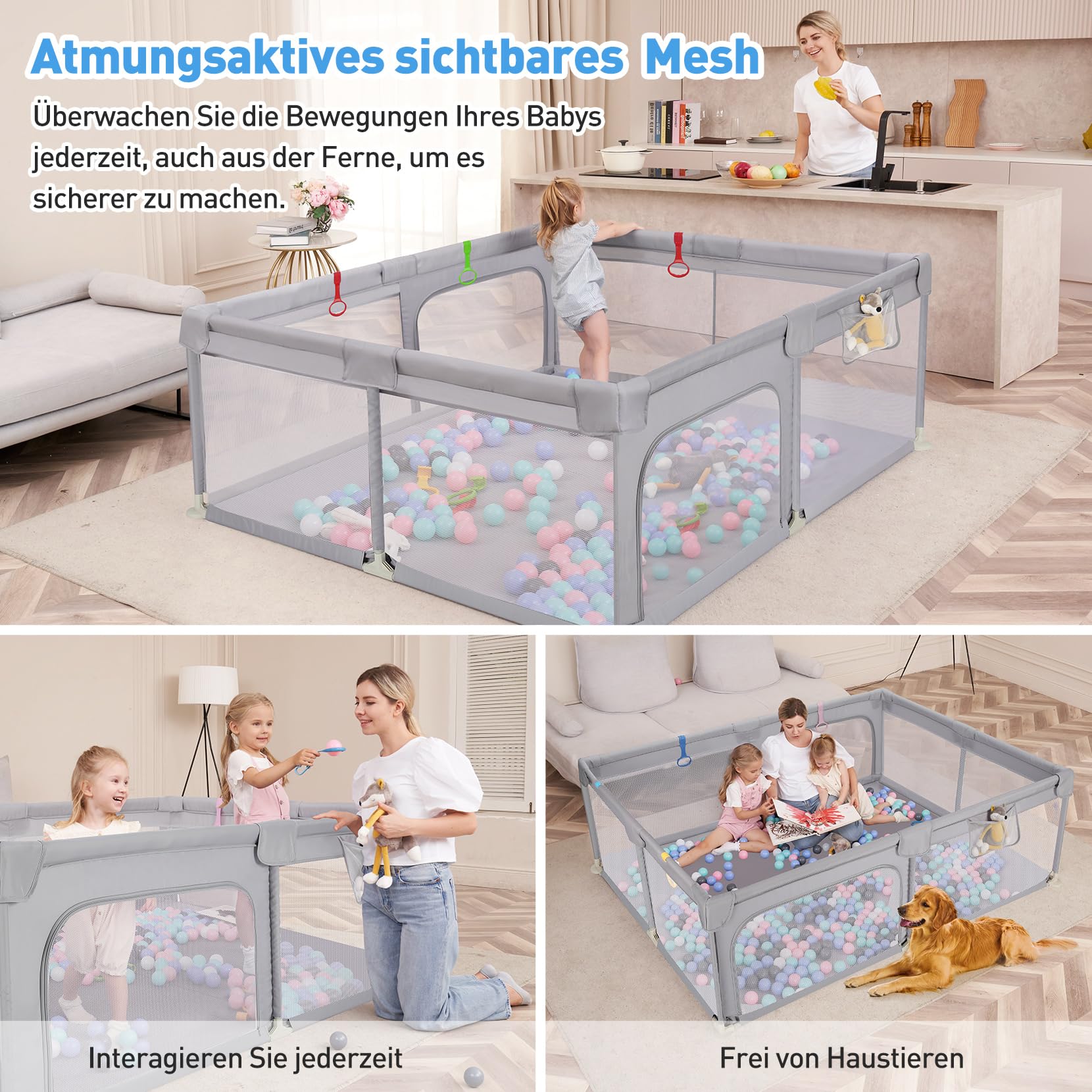 Dripex Playpen Baby 150x200cm, Playard Baby, Playpen with breathable mesh, Playard 300D Oxford Fabric, Playpen, baby playpen, Large Safety Playground, Gray