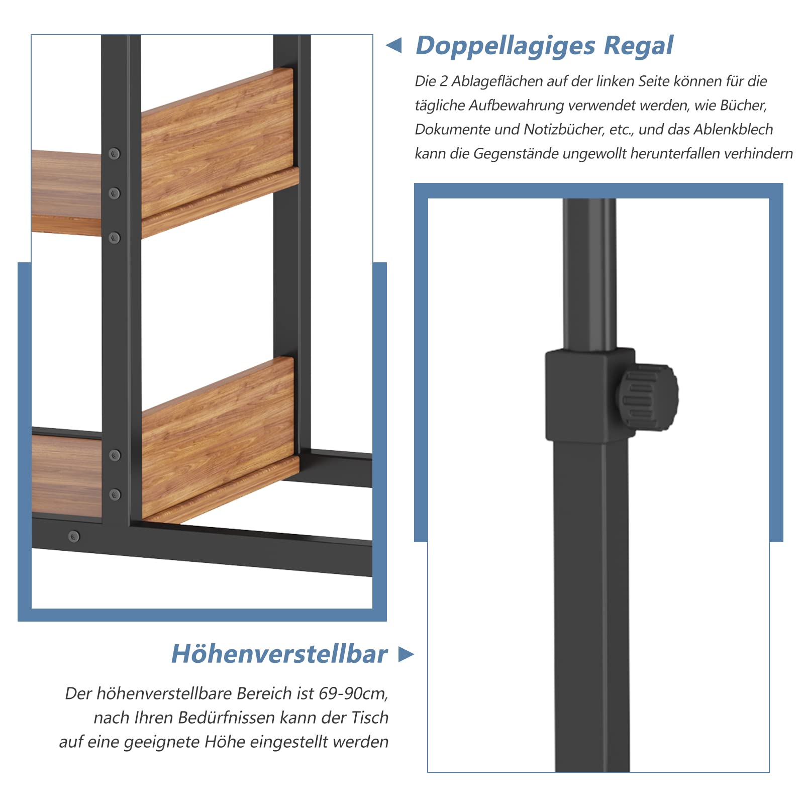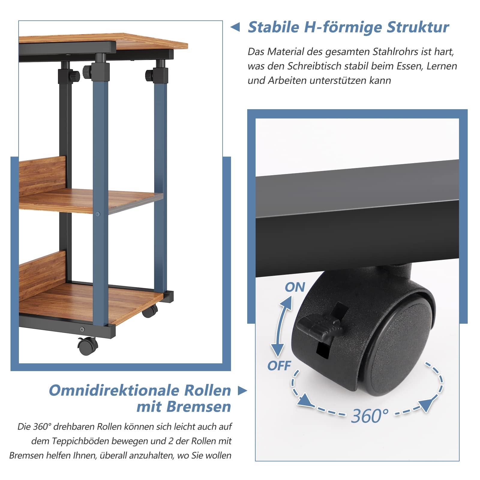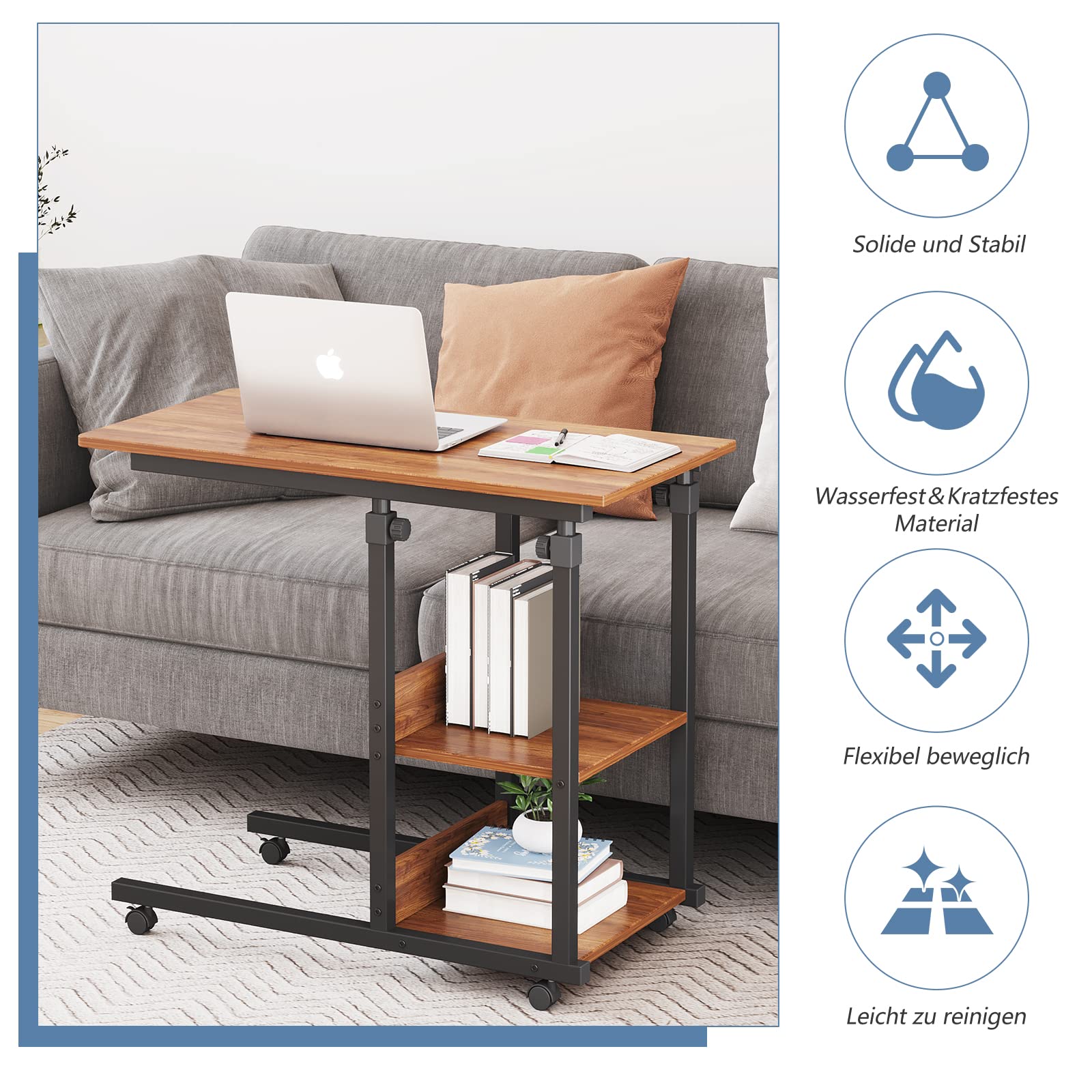 ["HIGH QUALITY MATERIAL. With MDF wood panel, the side table is scratch-resistant, waterproof, and easy to clean. The surface size is 80 x 40 cm.","HEIGHT ADJUSTABLE. The computer bed table can easily adjust the height from 68-89 cm with two lever screws. You can adjust the suitable height of the desk according to your needs. This rolling computer table is suitable for most beds and chairs.","VERSATILE. The side table fits perfectly in the bedroom, living room, next to the desk, and on the sofa as an additional small workspace, as a PC table / laptop table for home office.","REMOVABLE TABLE. This computer table is equipped with 4 swivel and lockable wheels, which can easily move and keep the table in place without wobbling. Ideal for use on a sofa, bed, on the floor, or elsewhere when using a laptop, reading, writing, eating, or drawing.","EASY TO INSTALL. With the help of the easy-to-understand instructions, the mobile desk is very easy and quick to set up. The instructions are absolutely simple - with pictures in step sequence."]