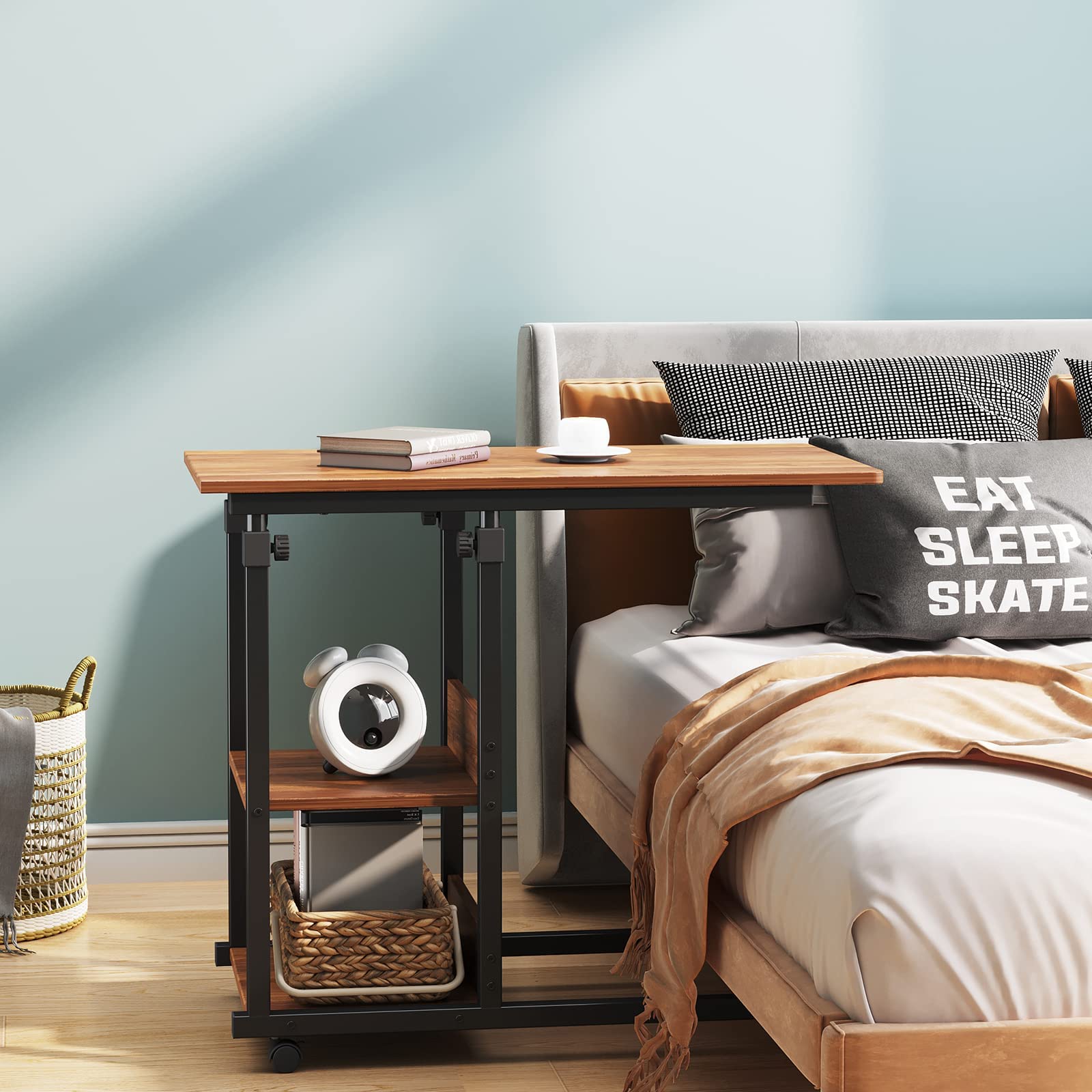 Dripex side table with wheels Adjustable Height Laptop Table Wooden Desk, Sofa Side Table Coffee Table Bedroom, Living Room Dark Brown