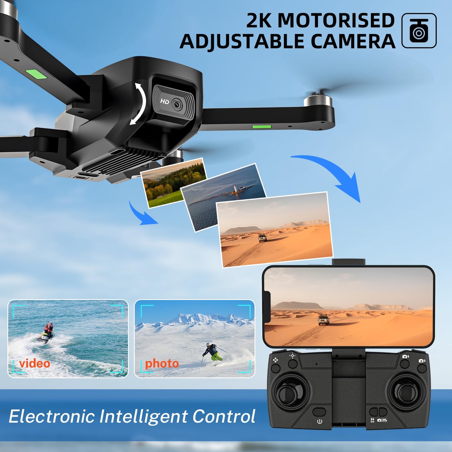 ["Drone with 2K HD FPV Camera: Equipped with a 2K HD camera and Wi-Fi live transmission FPV system, you can record HD footage and save it directly to your phone to share the amazing views captured. Explore without limits.","Portable and Long-lasting: Brushless motors run more powerful and quieter than brushed motors, allowing for more stable and faster flight. They also have a longer lifespan, saving you motor maintenance. Meanwhile, two batteries extend the flight time to 40 minutes. A suitable storage box is also included. An ideal choice for outdoor photography enthusiasts.","Multiple Functions RC Drone: You can fly the FPV drone with the remote control or a smartphone. The camera drones can perform impressive 3D flips. Functions like altitude hold, headless mode, one-key start/land and speed adjustment make it easy and fun for adults or beginners.","Safety and User-Friendliness: Flying this drone is magically easy, just tap the One Key Start/Landing button to start the flight. Altitude hold and optical flow positioning ensure that the drone remains more stable at a certain height, making it easier to control and capture high-quality footage. Equipped with low-power alarm and emergency stop to ensure a safe flight of the drone.","Professional Service: If you have any questions about the performance and operation of our products, please contact us directly. We will do our best to provide you with a quick response and good support."]