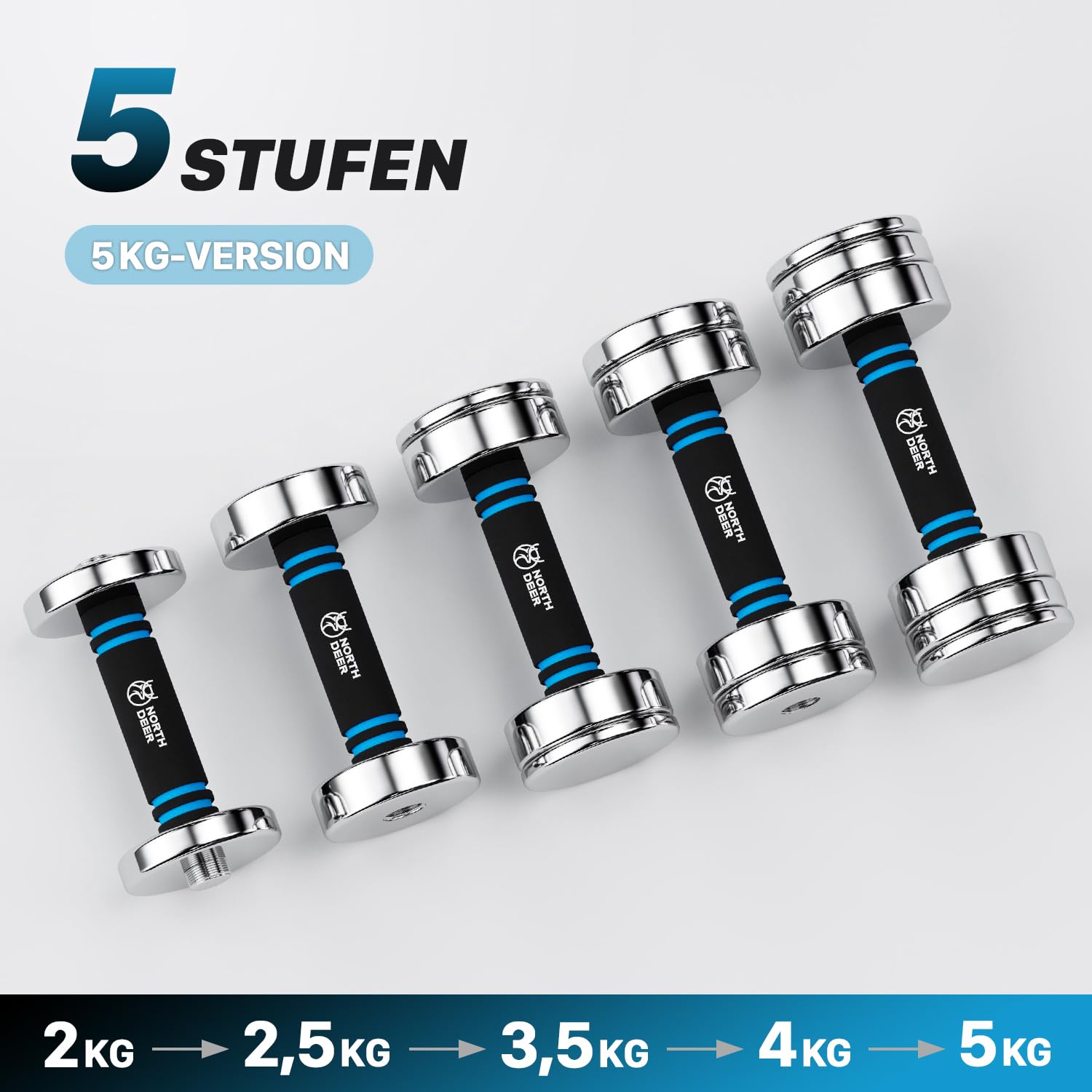 Dumbbells 2 set 5kg (2.5kg/3.5kg/4kg/5kg) - Adjustable dumbbells set with foam grip - Dumbbell set ultra compact for home (standard version 5kg×2)