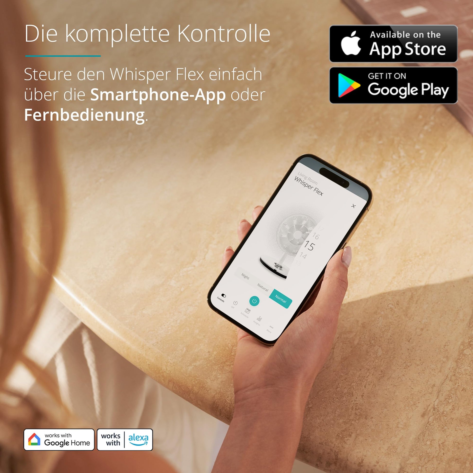 SMART STAND FAN - Our innovative pedestal fan can be intuitively controlled via the remote control or our exclusive app on your smartphone. Our Whisper Flex is available in black and white.