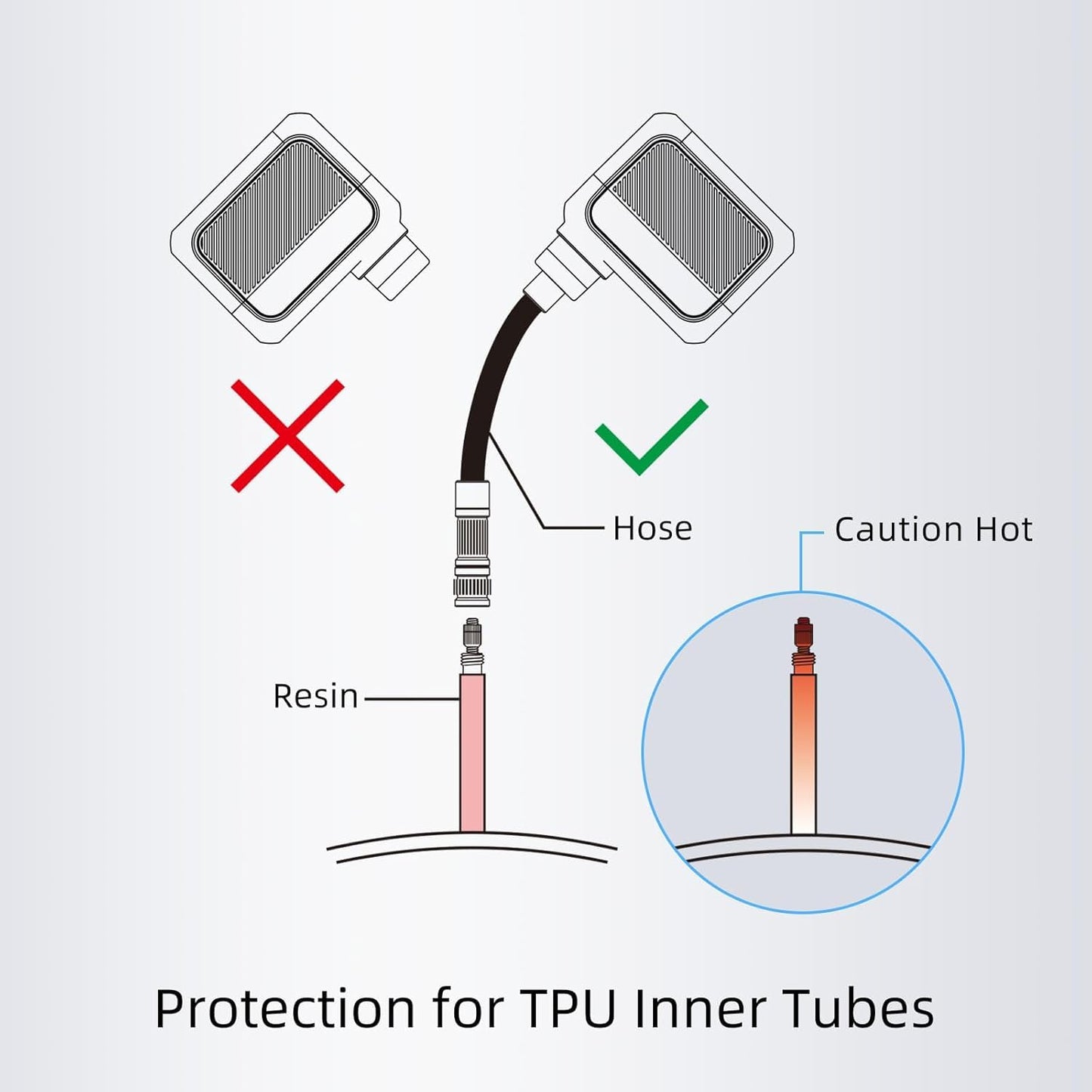 【Additional Notes】For TPU hoses with resin valves, they must be connected with an extension hose to prevent valves from melting due to overheating. Tips: There are two sealing parts. (Sealing part *1 built into the air pump)