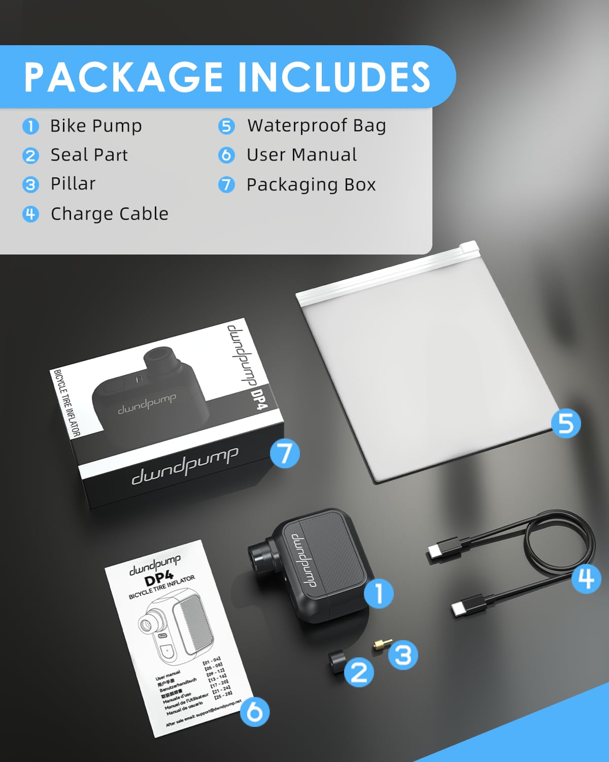 ["Rapid Inflation】The dwndpump mini bike pump reaches 80 PSI in just 80 seconds and can easily reach up to 100 PSI. Experience fast inflation like never before! Highlights: Ohne Reichweite."["