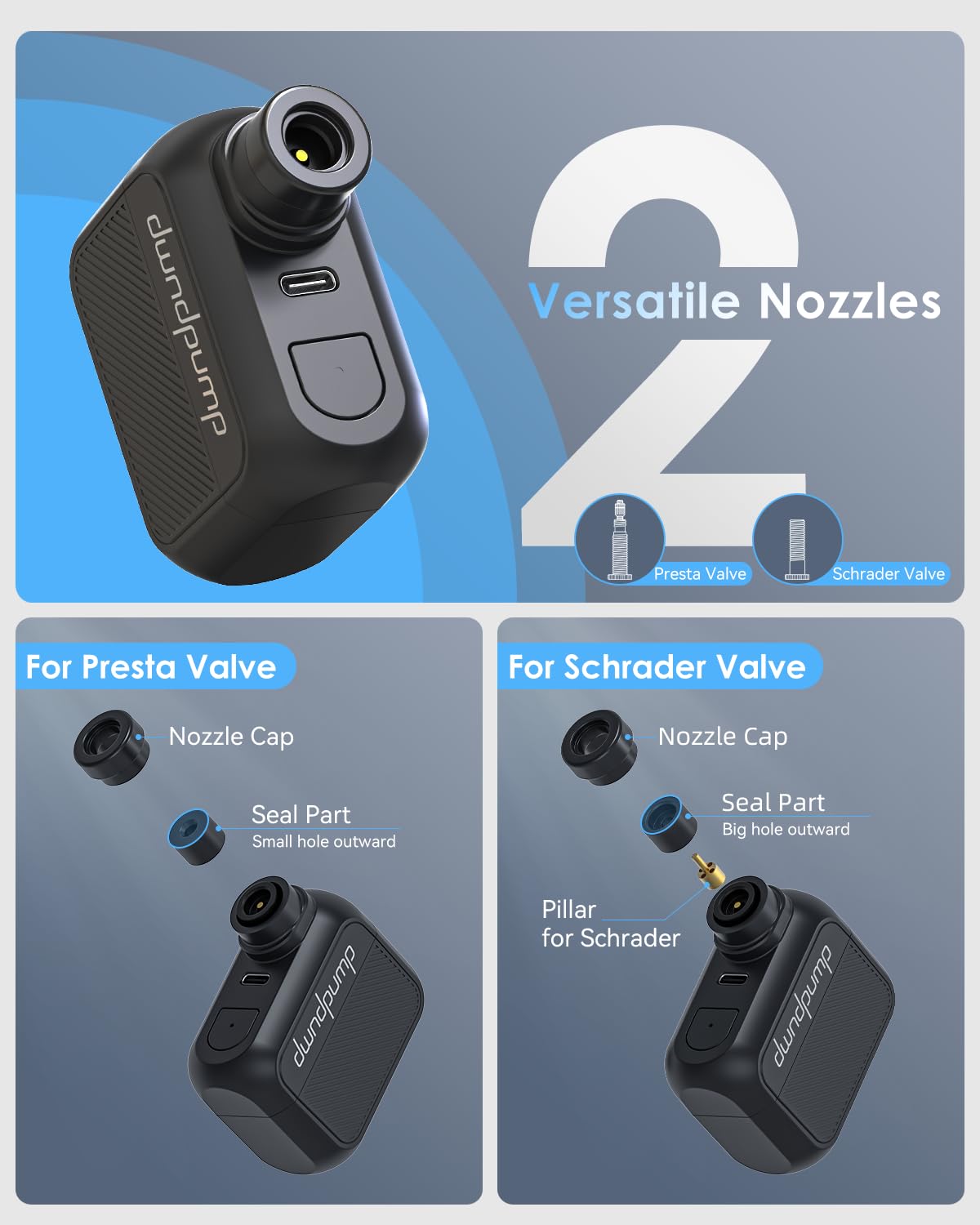 dwndpump Mini Bike Pump, 100 PSI Electric Bike Air Pump, Portable Battery Bike Pump for all valves, Small Bike Mini Pumps for road bikes, with Presta and Schrader Valve (no pressure gauge)