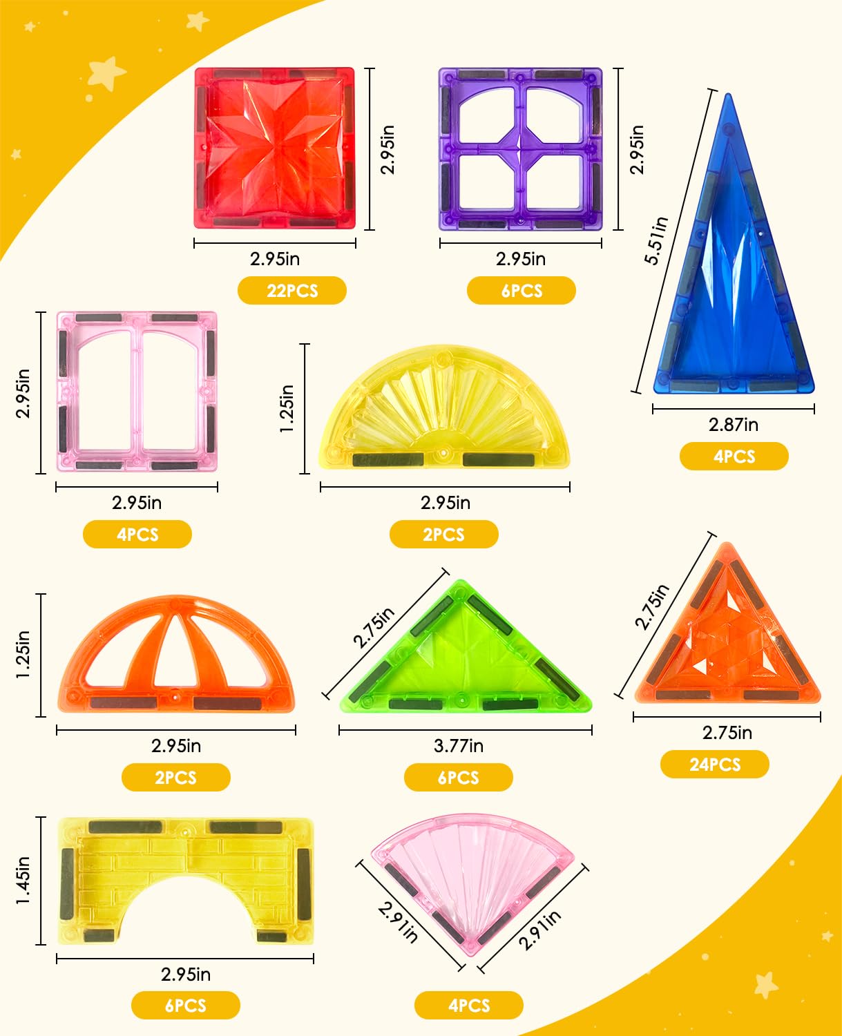 ["Safe and Trustworthy Magnetic Toy"] This set offers high-quality materials and diverse construction possibilities. With smooth surfaces and rounded corners to ensure that little hands are not injured during play. Suitable for children aged 3+. Safe and entertaining for children to explore the colorful world and enjoy the fun of Strong Magnet Montessori Toy for Children.