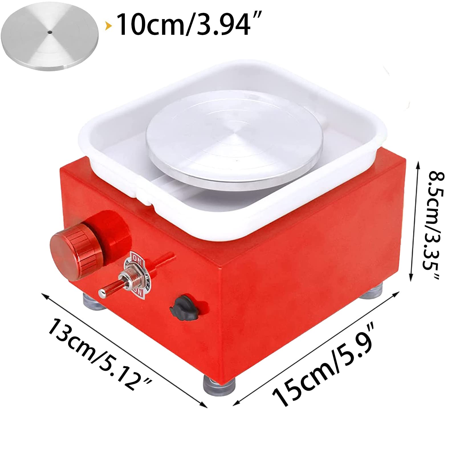 DYOUen Electric Pottery Wheel - Clay Machine With 10 cm Turntable and Removable ABS Soundproofing Pottery Wheel Electric Mini Pottery Set for Beginners (Red)