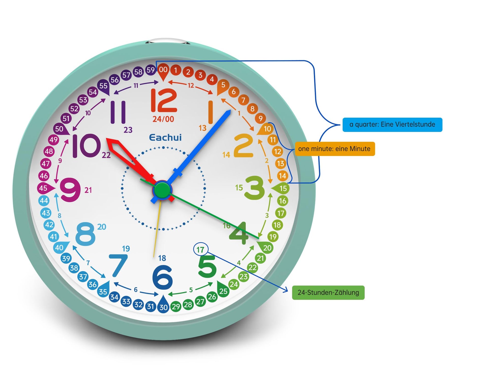 "Child-friendly Design: The analog children's alarm clock design is not only beautiful, but also a useful educational tool for children, as it conveys the concept of time measurement more easily through bright colors and clear numbers. The design of the alarm clock encourages children to engage with it and learn through exploration. This way, they can develop a deeper understanding of time measurement and learn to appreciate the importance of punctuality.