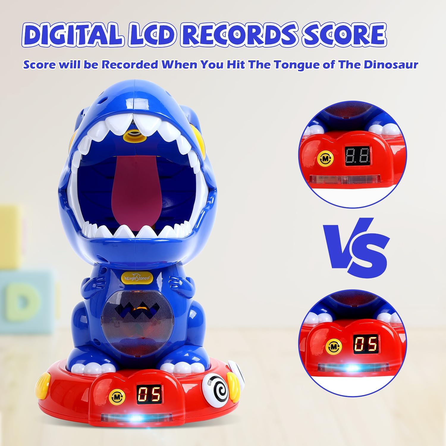 ["Auto Scoring and Musical Spray: Get ready for a surprise! Every time a foam ball hits the hungry dino's tongue, a cheer sounds, and the LCD displays the score. But that's not all - watch as the dino's mouth lights up and releases a fascinating blue mist, adding an enchanting touch to the game.","Static and Moving Modes: Gear up for different challenges! In static mode, perfect for young beginners, you can aim with ease. For a more daring adventure, switch to the moving mode where the target's universal wheel glides over obstacles, putting even the most advanced players' skills to the test. A fantastic gift idea for kids aged 6-8, ensuring entertainment for the whole gang!","Multiplayer Mayhem: Gather your friends and family for epic battles! Equipped with 2 foam blasters and a plethora of lightweight balls, our Dino Blast set guarantees hours of competitive fun. From friendly matches to thrilling showdowns - this toy is the ultimate plaything for boys and girls aged 8-12.","Presents for Playtime: Our Dino target boards are made from high-quality materials, sleek and flawlessly designed to ensure a safe game for children and adults. Surprise your little ones with this fantastic toy set, perfect for birthdays, holidays, and special occasions where endless action and excitement are a must!","Best Christmas Gift for Kids: Get ready for a fun and exciting adventure with our Dinosaur shooting game. Give your kids a gift they'll remember for years to come - it's time to unleash their inner explorer!"]