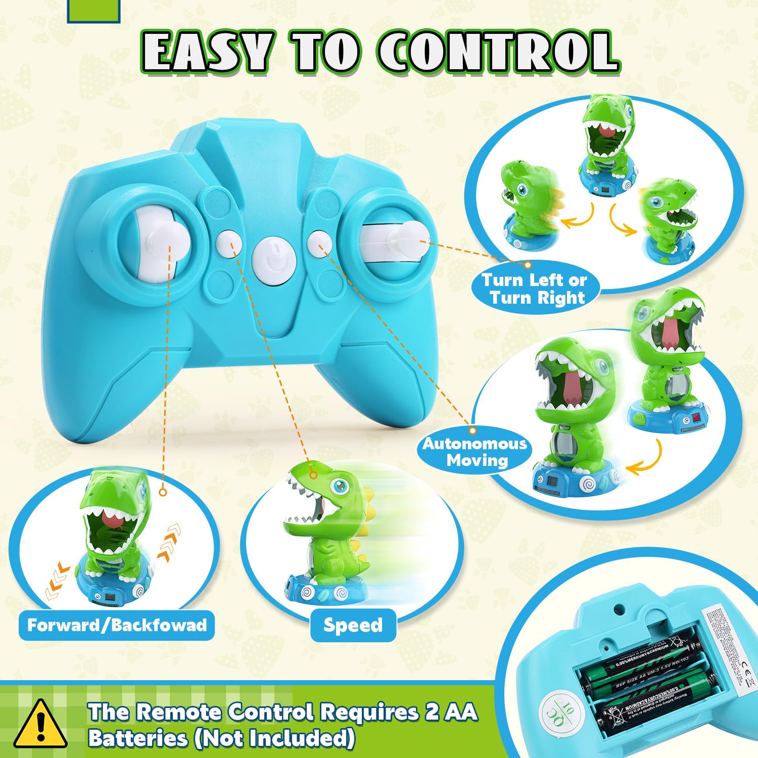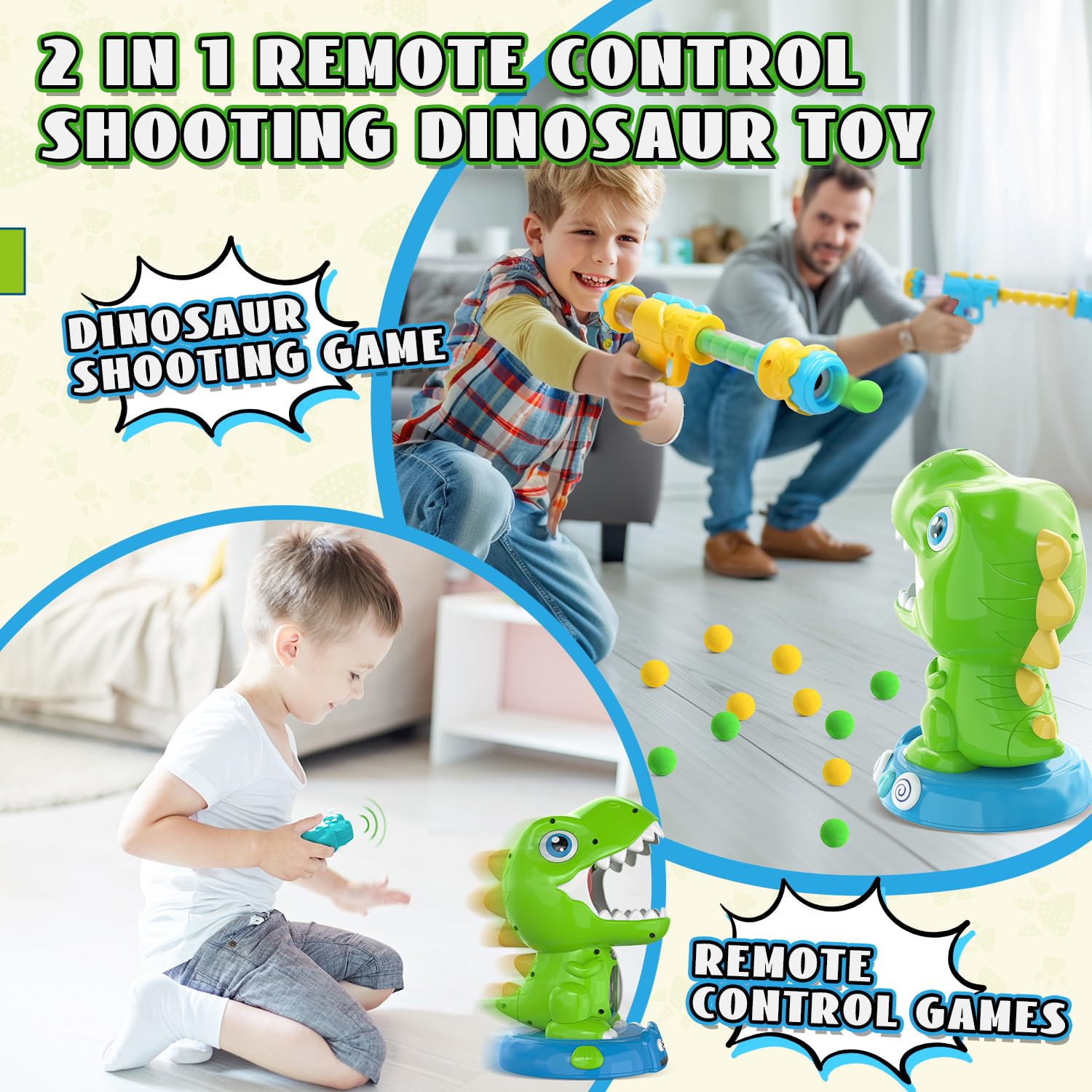 ["【3 Game Modes】This RC Dinosaur game offers 3 unique modes! 1. Static Mode: easier to aim and hit the target! 2. Remote Control Mode: The Robot Dinosaur pet is a great remote control toy robot that will move forward, backward, turn left, and right on your command. 3. Auto Demo Mode: Experience dynamic gameplay with automatic obstacle avoidance, making each shot an exciting challenge. Each mode offers its own kind of excitement.","【Electronic Scoring & Smoke Effects】The toy for boys aged 6-8 features a digital scoring system that tracks hits on the dinosaur's tongue. After each successful shot, the score is updated on the LED screen, and the dinosaur emits smoke and lights up. After five hits, it cheers, boosting your child's confidence.","Complete Dinosaur Shooting Set】This multifunctional dinosaur shooting toy includes an automatic dinosaur target, a 2.4GHz remote control, a rechargeable battery, 2 pump-action guns, 48 EVA foam darts, and a dropper. Great 6 7 8... year old boy birthday gift to offer different gameplay options suitable for all ages.","【Long-lasting Play】Equipped with a powerful 500mAh battery, this toy ensures hours of fun for 6 7 8 9... year old boys. The 2.4GHz remote control allows for smooth, responsive operation, perfect for multiplayer action.","【Promotes Hand-Eye Coordination】This shooting game is a fun way to help children improve hand-eye coordination. An interactive game for indoors and outdoors for your boys and girls. Decent Christmas, holiday, birthday gifts, carnival games for kids, friends, family members."]