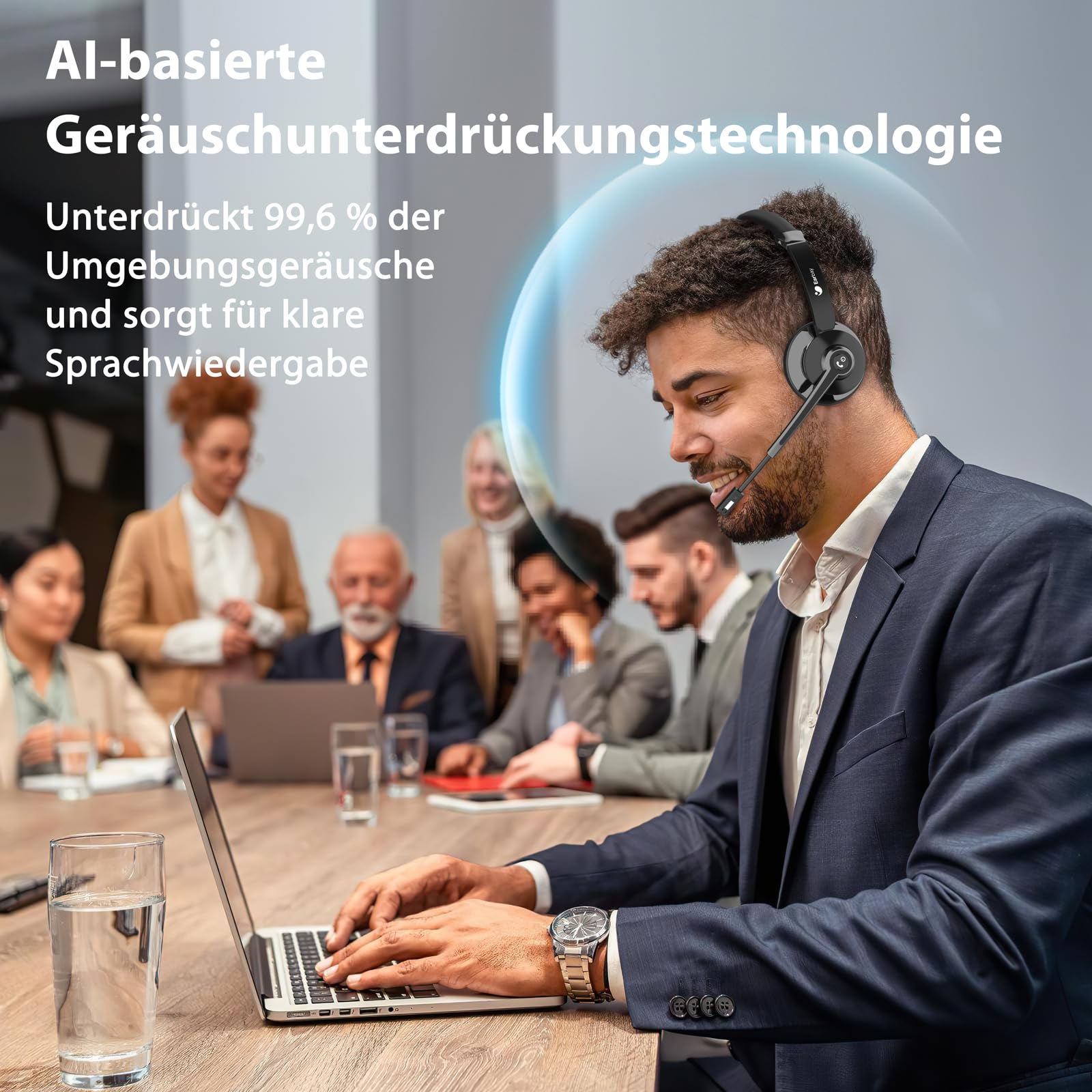 【Universal Compatibility & Extended Warranty】: This Bluetooth headset with charging station seamlessly integrates with leading communication platforms such as Skype, Zoom, and VoIP systems. Our wireless Bluetooth headset comes with a 24-month warranty and around-the-clock technical support, ensuring reliable performance for professional and enterprise-wide applications"