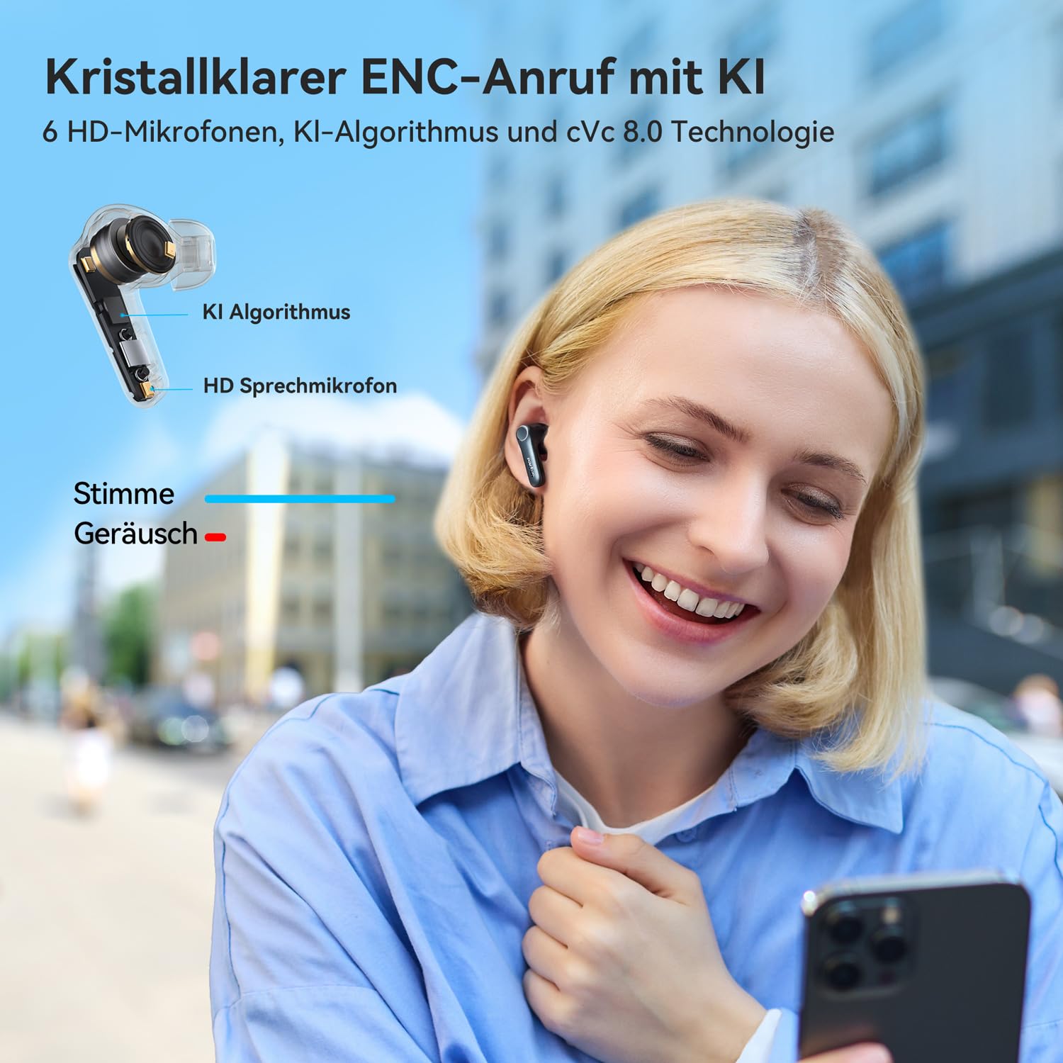 【HD CALLS WITH 6 MICROPHONES AND AI NOISE CANCELLING】: Equipped with AI-based cVc noise cancelling technologies and six high-resolution microphones, the headphones detect ambient noises in real-time and dynamically reduce them for clear HD calls.