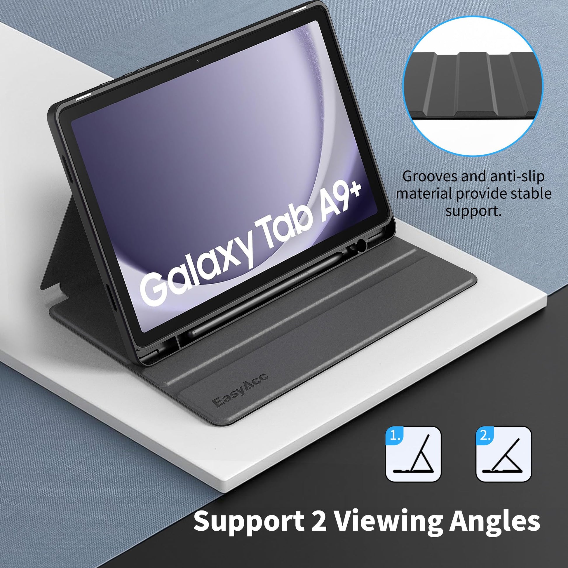 EasyAcc case book cover for Samsung Galaxy Tab A9 Plus/A9+ 11 inch 2023 with S Pen holder, slim folio stand tablet case, multi-angle viewing, black