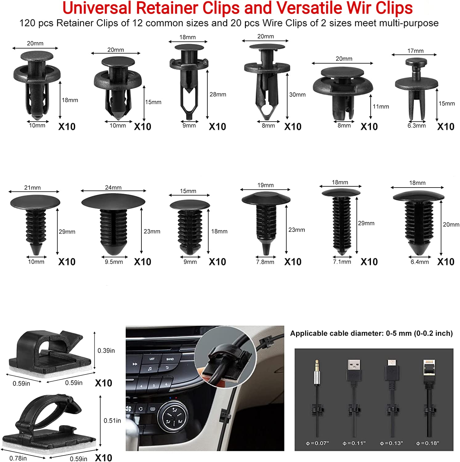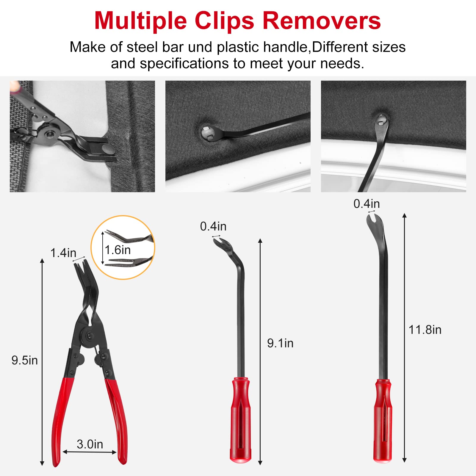 "[Fastener Removal Set with 120 Clips]: Made of 65-gauge manganese steel rod, PPE handle, ergonomic design, comfortable to hold, suitable for many types of round and square clips, stubborn clips, fasteners, clamps, plastic rivets etc.; 120 car clips, 12 sizes, made of high-quality specialty plastics. For Chrysler, Toyota, Ford, Nissan, Honda etc. door panels, bumpers, radiator guards, fenders, splash shield bracket replacement",