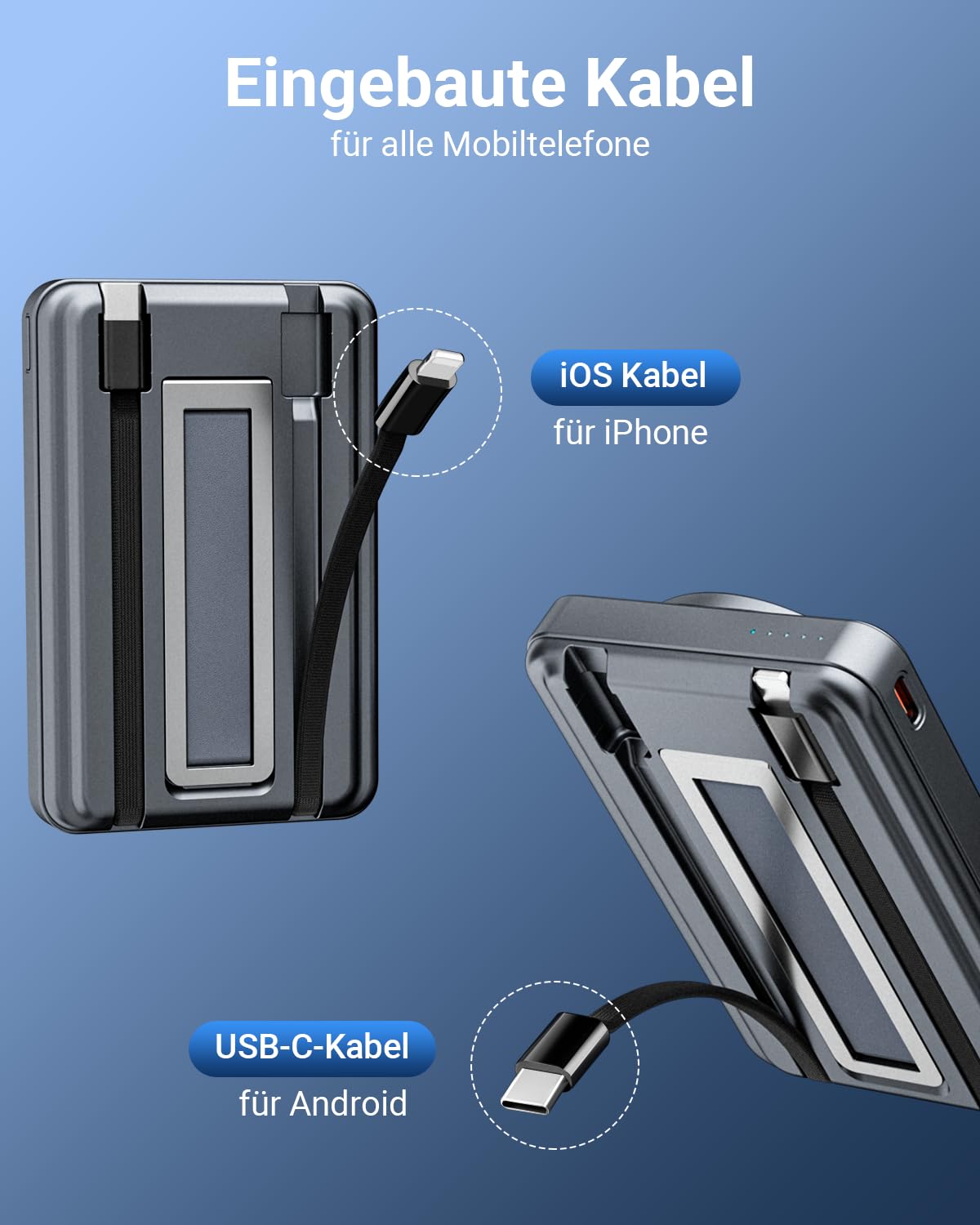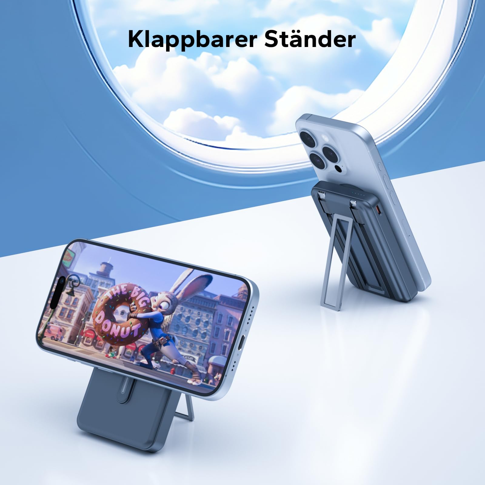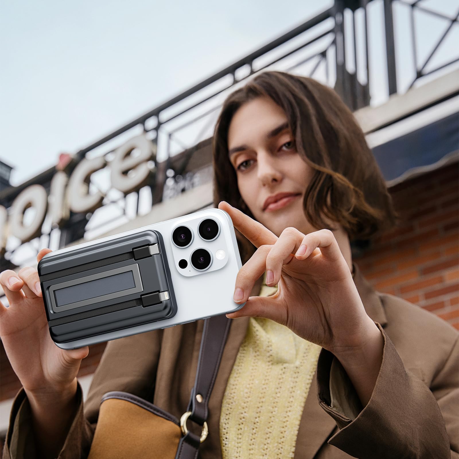Foldable Stand & Portable Design - This magsafe powerbank comes with a flexible, foldable stand that holds your iPhone (horizontally or vertically). During charging, you can watch videos. Free your hands. The ultra-lightweight design allows you to carry it with you, fitting perfectly in your bag.