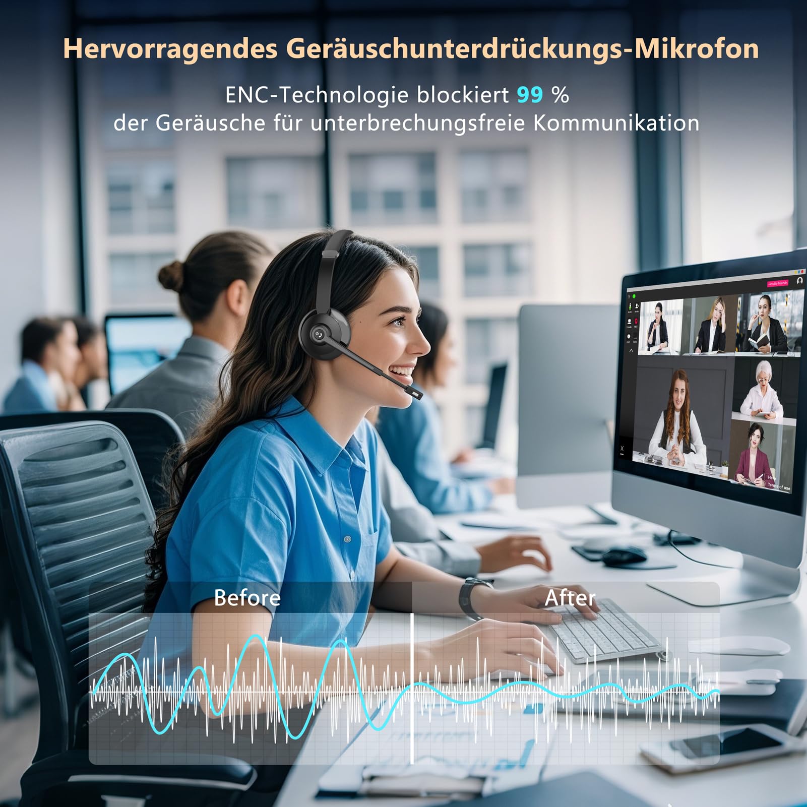 ["Dual Connectivity & Compatibility】With the dual connectivity function, the PC headset can wirelessly connect to two devices simultaneously. The wireless headphones work seamlessly with popular office software such as Zoom, Skype, Microsoft Teams, and more. Additionally, they are compatible with most computers, laptops, desktop PCs, smartphones, and tablets - the perfect choice for your office!
