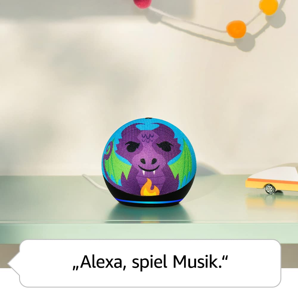 ["ECHO DOT KIDS - Our most popular smart speaker with Alexa, designed for kids. 1 year of age-appropriate Amazon Kids+ content included.","LEARNING AND FUN - Kids can ask Alexa to play music or read bedtime stories. Alexa can also help with math learning and much more. Stream songs from Amazon Music, Apple Music, Spotify, and other providers (separate subscription may be required).","1 YEAR OF AMAZON KIDS+ CONTENT INCLUDED - A digital membership ideal for children aged 3 to 12 to safely learn and grow. It provides access to entertaining and informative content from Bibi & Tina, WHAT IS WHAT, Benjamin Blümchen, and more. After one year, additional charges will apply starting at €4.99 per month. Membership can be canceled at any time through the Amazon Parent Dashboard or Customer Service.","USER-FRIENDLY PARENTAL CONTROLS - Alexa provides kid-friendly responses and can restrict access to songs with explicit content. You can also set maximum volume levels and daily time limits, as well as review activities in the Parent Dashboard.","INDEPENDENT EVERY DAY - Kids can take responsibility for their own routines with Alexa, such as setting their own alarms, turning off compatible smart lights, or calling parents-approved friends and family members.","AMAZON KIDS+ ON ALL SUPPORTED DEVICES - Unlimited access to kid-friendly books, premium skills for kids, and more on all your Kids+ supported devices.","2-YEAR WORRY-FREE GUARANTEE - If the device breaks, you can simply return it and we will replace it for free.","DESIGNED TO PROTECT YOUR DATA - Includes multiple layers of privacy and security measures, including a microphone-off button that allows you to interrupt power to the microphones and deactivate them."]