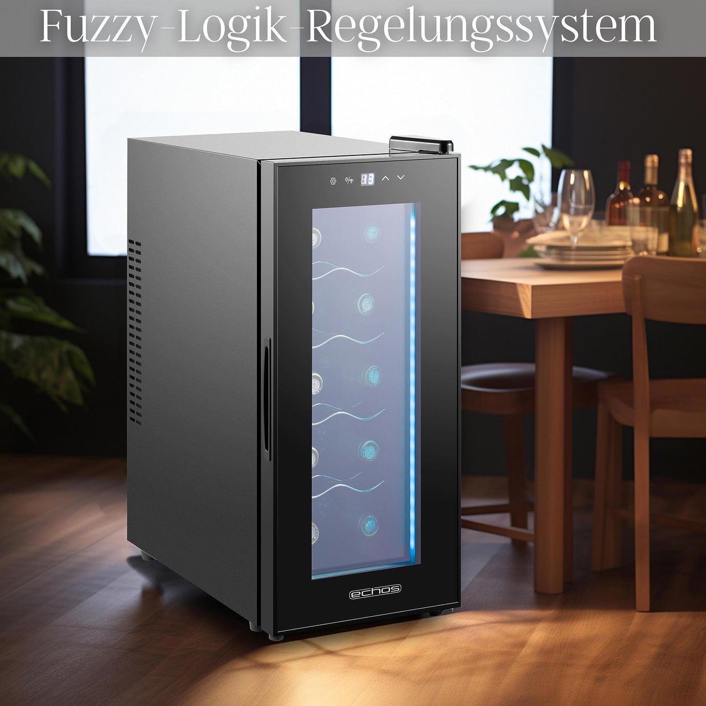 ["Our wine cooler with thermoelectric cooling system is the ideal solution for wine lovers who want to store and showcase their wine collection optimally. With its numerous outstanding features, it provides the perfect environment for aging and storing up to 10 wine bottles.","The thermoelectric cooling system of the wine cooler ensures that the stored wine can naturally mature by avoiding the vibrations caused by conventional compressor cooling systems. This provides a quiet environment for the wine to reach its full potential.","Unique is the fuzzy logic control system, which ensures low energy consumption and can meet both the DOE and ErP energy standards. This intelligent system automatically adjusts to external conditions and optimizes cooling performance to minimize energy consumption.","With a temperature control of 3-18°C, the wine cooler offers the flexibility to set the temperature according to individual requirements and preferences. The delicate soft-touch electronic control on the door allows for convenient and precise temperature adjustment without the need to open the door, minimizing heat loss.","The wine cooler is FC-free and environmentally friendly designed. It does not use HCFCs or other harmful substances that could affect the ozone layer. This allows you to store your wines with peace of mind, knowing that you are contributing to protecting our environment."]