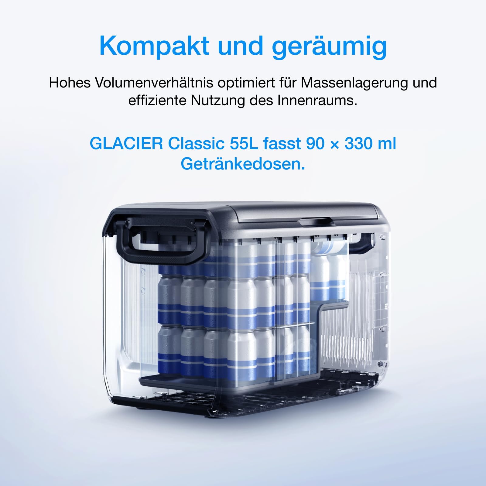 ECOFLOW GLACIER Classic Portable Cooler 55L with 298Wh Extra Battery, Two-Zone Car Cooler, 39 hours of off-grid cooling, powered by AC/Solar/Car, for camping, road trips, fishing