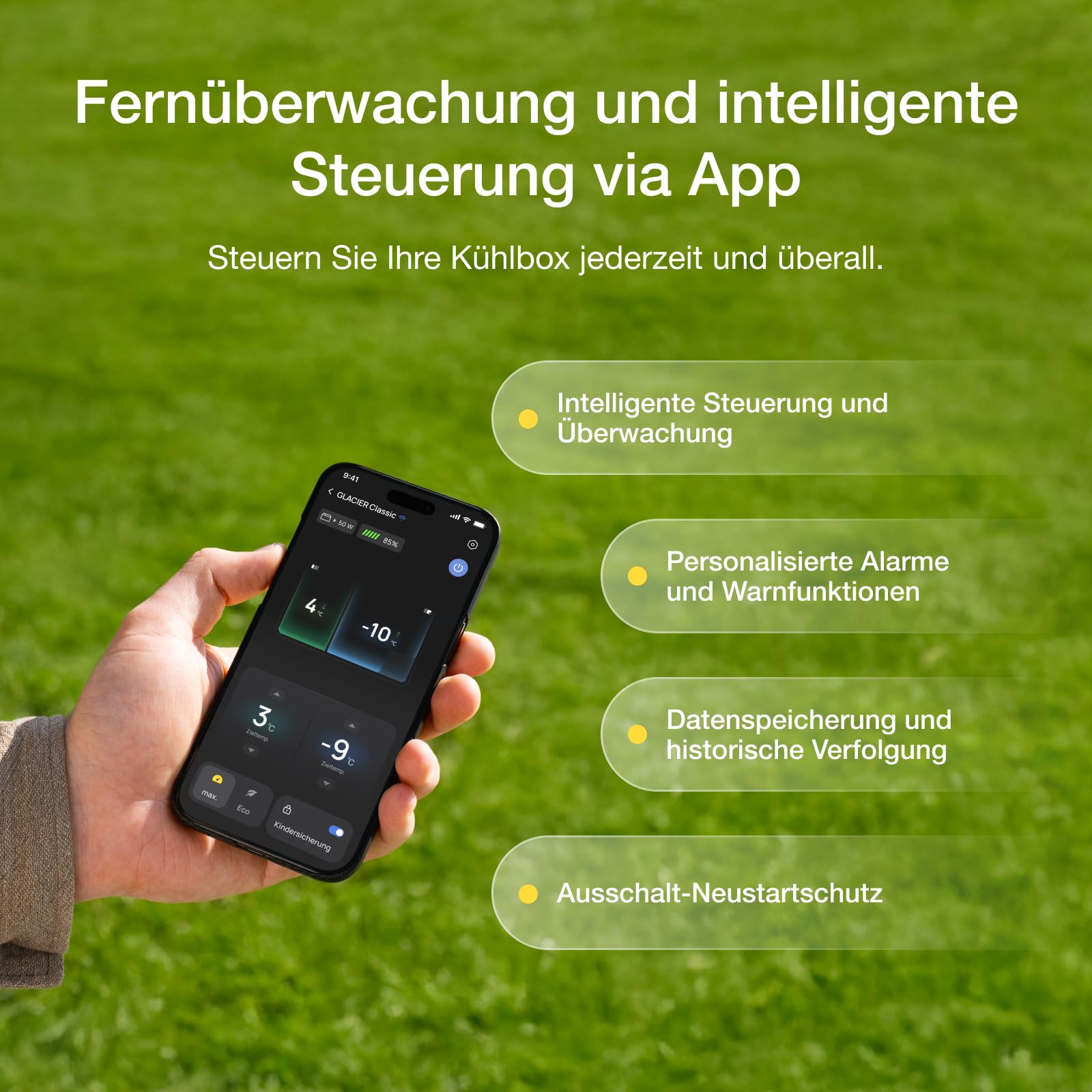 "Durable and ultra-quiet: Designed for outdoor use, the cooler box is drop-proof up to 250mm and can support a load of 100kg. At only 38 dB, it is quieter than a library – suitable for peaceful nights while camping in the car."