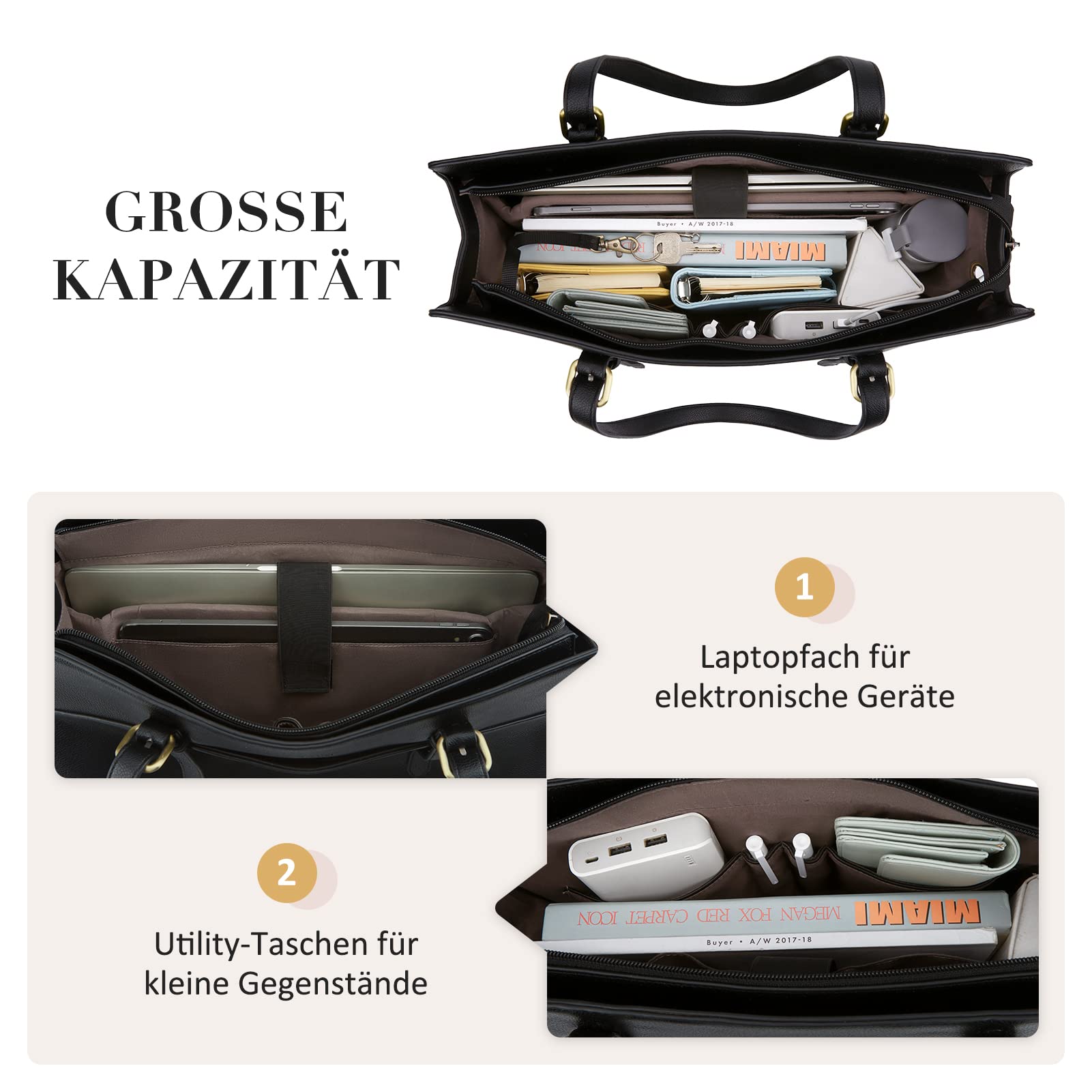 ECOSUSI women's laptop handbag, 15.6-inch laptop bag, shoulder bag, shopper, large business bag made of leather, work bag, notebook bag.