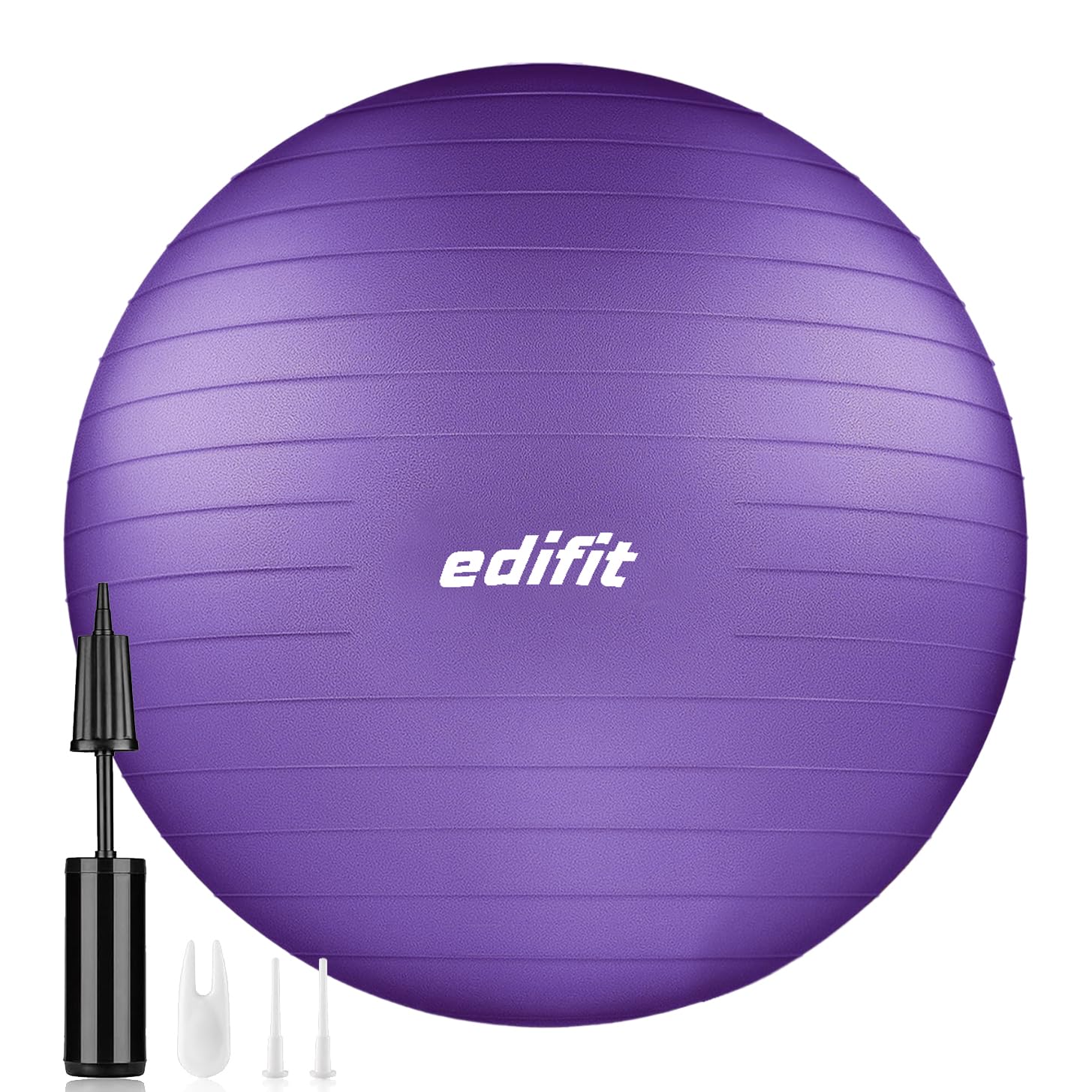 EDIFIT, Gymnastics Ball, 55, 65 and 75, Pezzi Ball, Including Inflator, Pilates Ball, Exercise Ball, Pilates, Yoga Ball, Gymnastics (65cm, Purple)