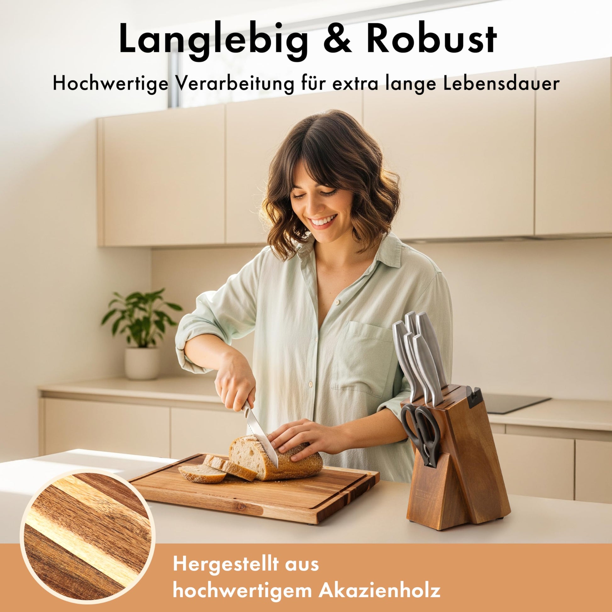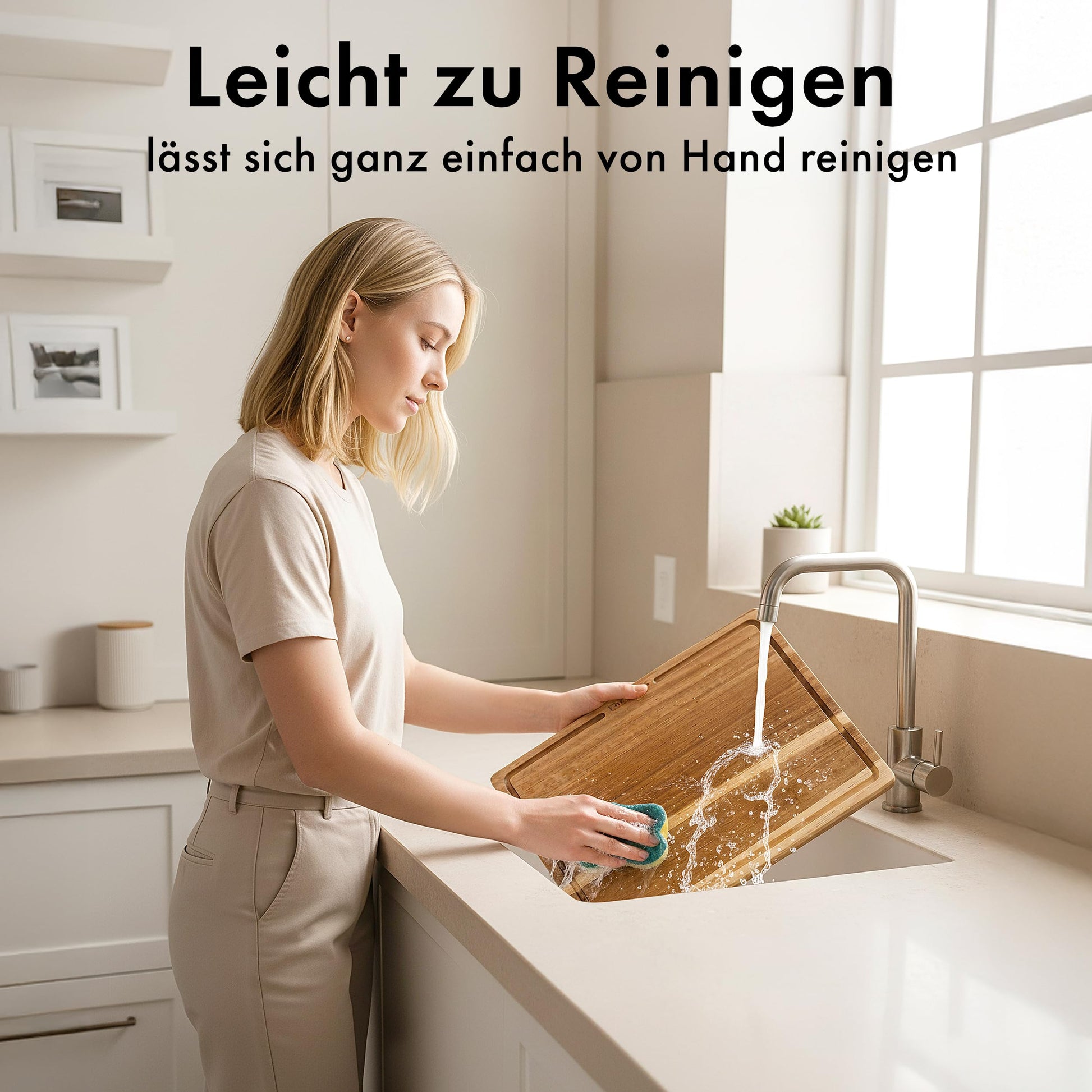 ["ROBUST ACACIA - Our cutting boards made from high-quality acacia wood are extremely durable and provide the perfect balance between stability and knife protection. Ideal for any kitchen!","IDEAL SIZES - The cutting board set includes three convenient sizes: 15.75x11.81 inches, 12.99x9.45 inches, and 10.24x7.09 inches. Perfect for various kitchen tasks and all your cutting needs.","VERSATILE USE - Whether as a kitchen board for cutting meat, vegetables, or fruit, our wooden cutting boards are true all-rounders in any kitchen and suitable for any dish.","ELEGANT DESIGN - The natural grain of acacia wood makes each wooden board unique and gives your kitchen a stylish look. Ideal as a serving board for your guests!","EASY CLEANING & CARE - Our cutting boards are easy to maintain and clean. With proper care, they are a durable companion in your kitchen that will bring you joy for a long time!"]