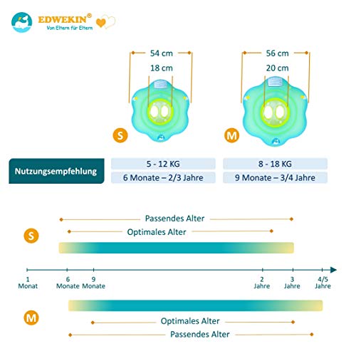 EDWEKIN® Baby Swim Ring, Adjustable Swim Aid, Swim Seat for Toddlers, Baby Float, Kids Swim Ring from 6 months to 2 years (S)