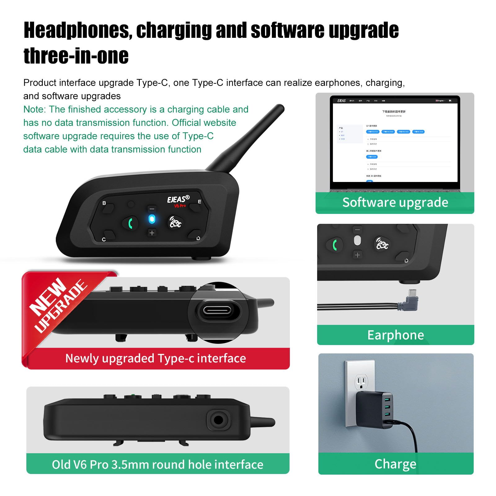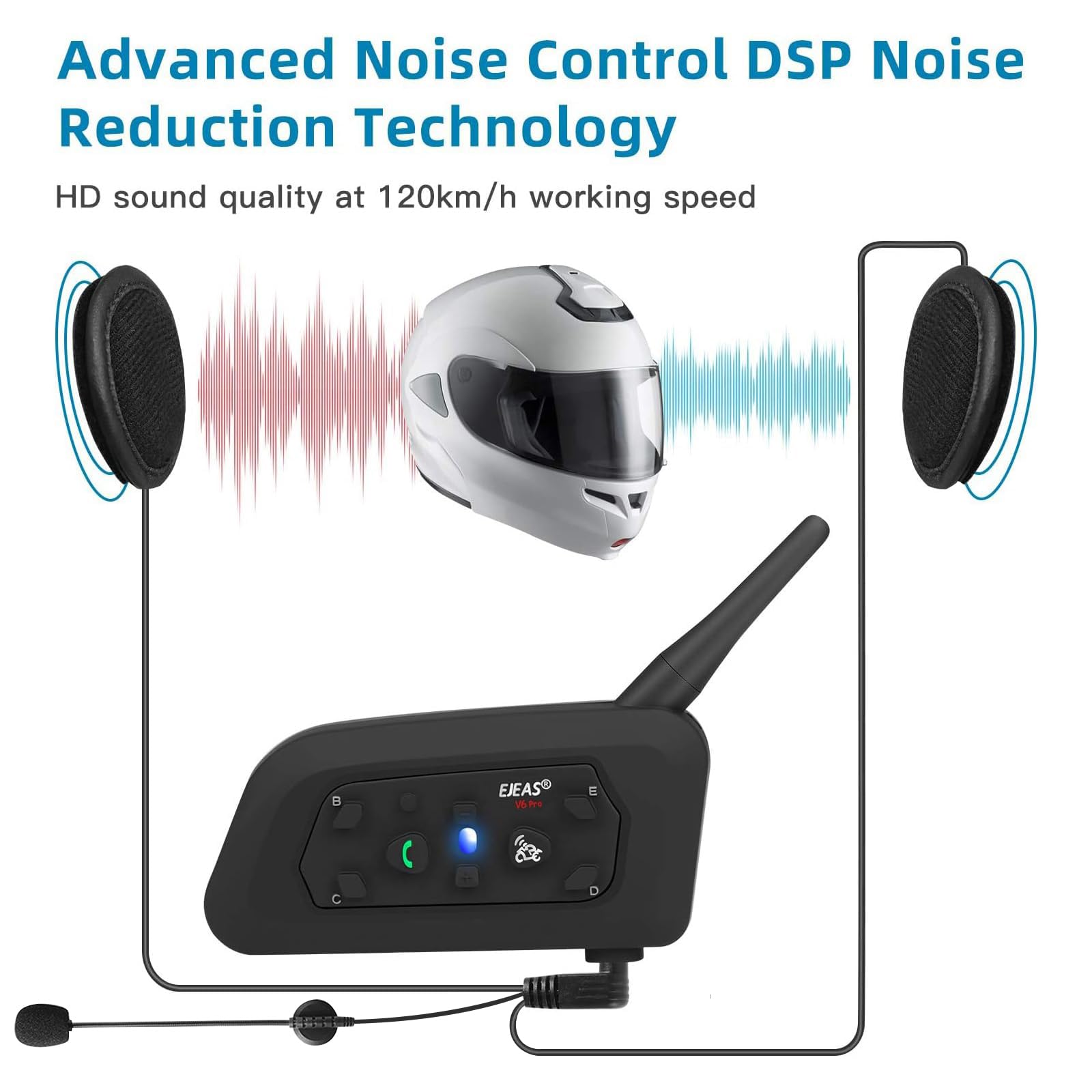 EJEAS VNETPHONE V6 Motorcycle Intercom Bluetooth Headsets 1200m up to 6 Riders DSP Noise Reduction, Waterproof, Communication System for Motorcycles, 2 Pieces.