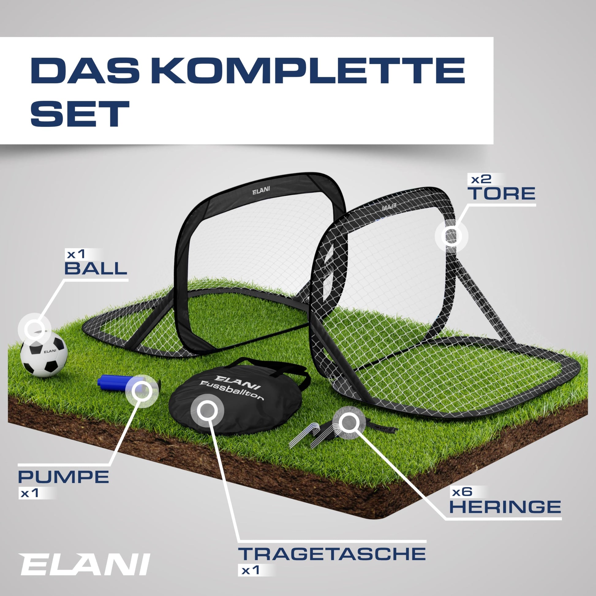 ELANI Soccer Goal Kids Pop-Up 2er Set - foldable with ball & pump, 50% smaller + easy assembly, mini soccer goal small, goal, soccer goals for garden kids, soccer goals, soccer goal, soccer