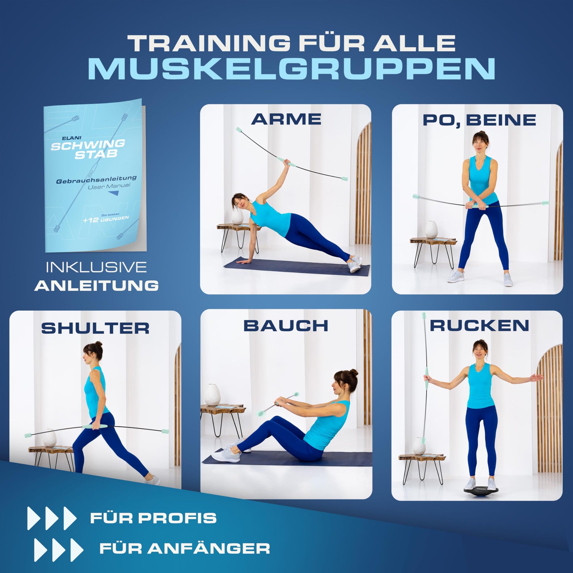 ["Effective full body workout] The Swing Stick strengthens muscles and promotes stability. With the training stick, vibration stick, and gymnastic stick, you can train your back, arms, and abs. The swing stick for adults - ideal for fitness and rehab.",