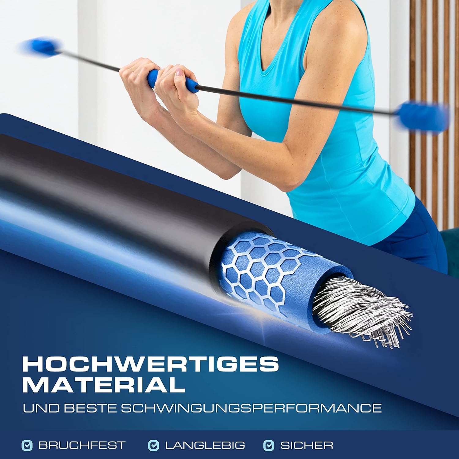 ["Effective full-body workout] The Swing Stick strengthens muscles and promotes stability. With the training stick, vibration stick, and gymnastics stick, you train your back, arms, and abs. The swing stick for adults - ideal for fitness and rehab.","[Strengthens muscles and posture] The swinging stick fitness test winner activates deep muscles. With the swinging stick fitness, swinging stick, and gymnastics stick, you improve coordination, stability, and release tension.","[Intensive swinging training] The Swinging Sticks activate deep muscles and promote stability. With the Swingstick, Swing Stab, and adult swing stick, you increase your strength, coordination, and flexibility.","[Effective muscle training] The adult swing stick activates deep muscles and improves your stability. With the stick vibration stick and gymnastics flex, you strengthen yourself effectively. The training stick even helps release tension.","[Ideal for therapy & fitness] The Physiotherapy swinging stick supports rehab and muscle building. It promotes stability and mobility. The Swinging Sticks help you release tension and strengthen your deep muscles."]