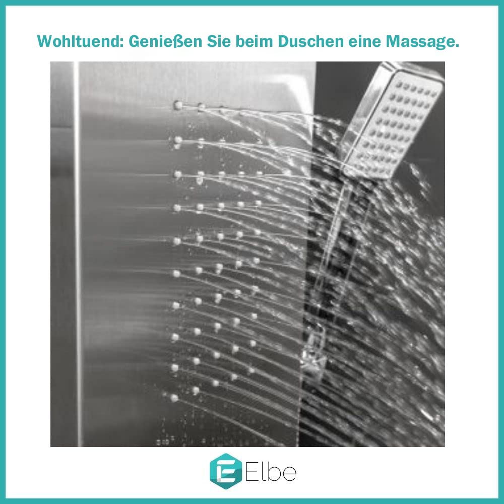 Elbe Stainless Steel Shower Panel for corner installation 4-function with rain shower shower set with hand shower, rain shower, 2 massage showers, waterfall shower, shower faucet complete set Adjustable temperature