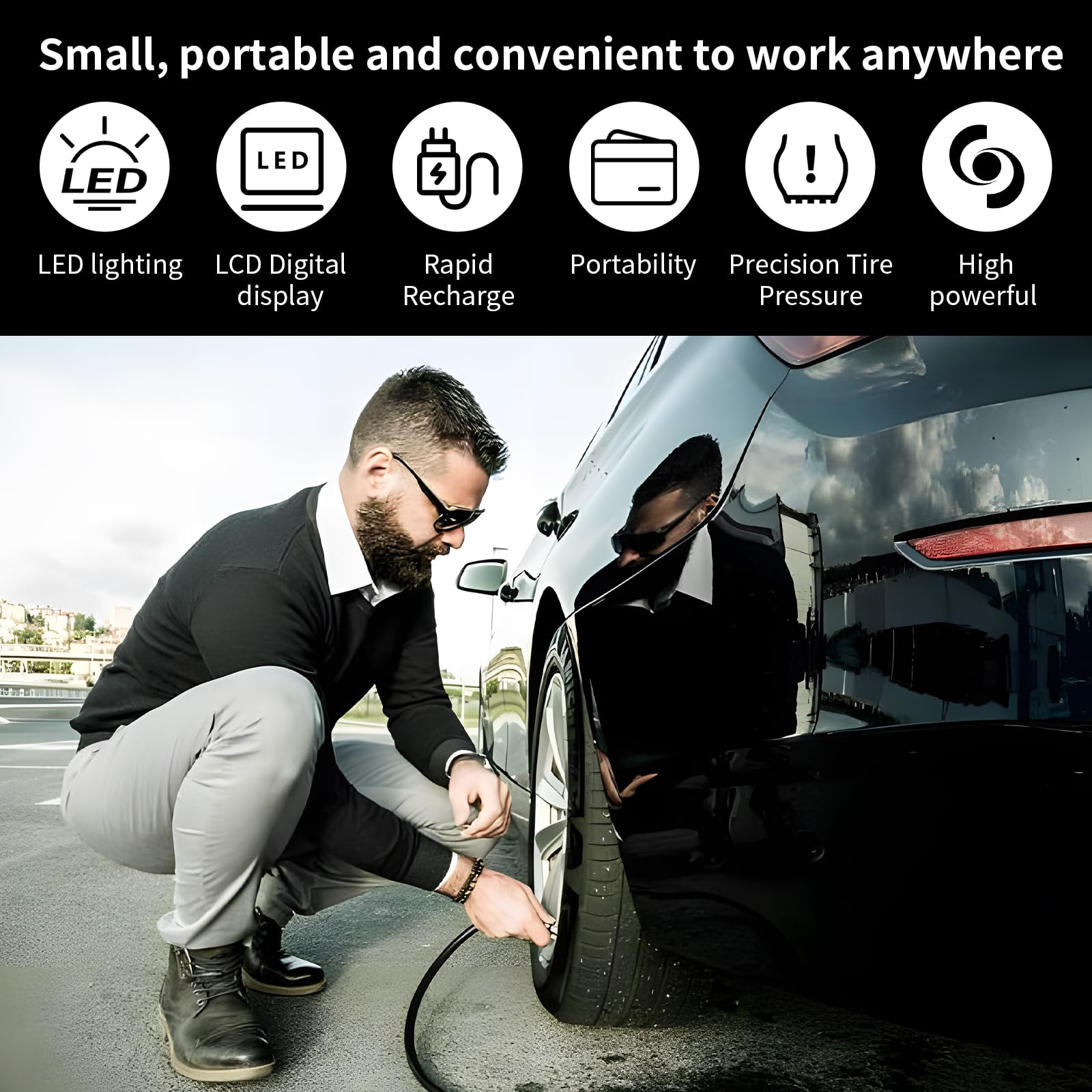 Electric air pump 6000mAh Rechargeable car tire pump 150PSI Electric air pump Electric compressor with LCD screen LED light for bicycles, motorcycles, cars & balls, AutoOff