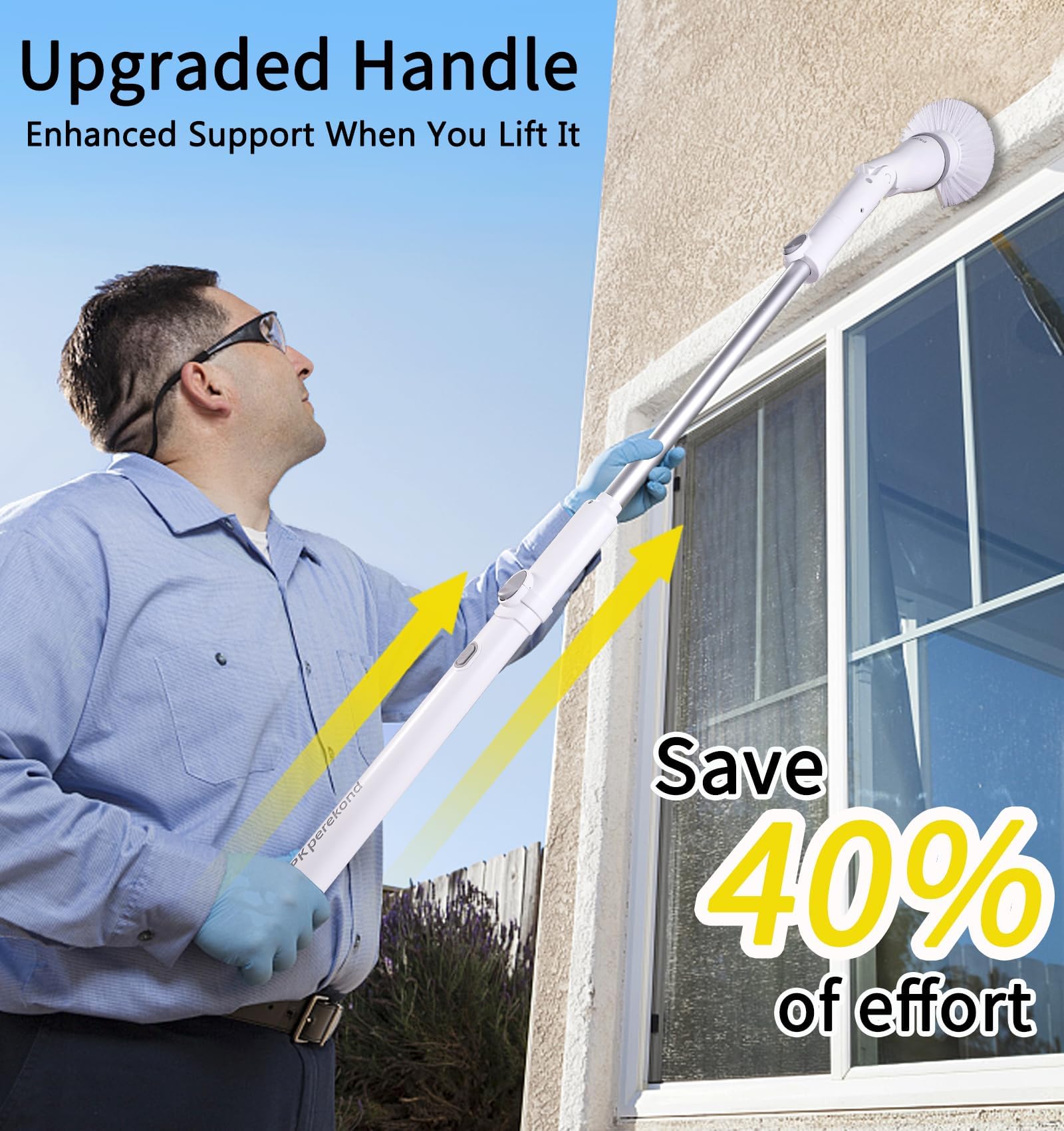 "✅【Adjustable Length and Angle】The electric scrubber can be adjusted from 37-130 CM, with adjustable angles. This allows you to clean hard-to-reach areas freely and easily without kneeling or bending over. You can adjust the cleaning brush to a length that suits you. It can even clean the wall or ceiling of the bathroom. If you remove the extension pole, you can also use the brush as a short brush.