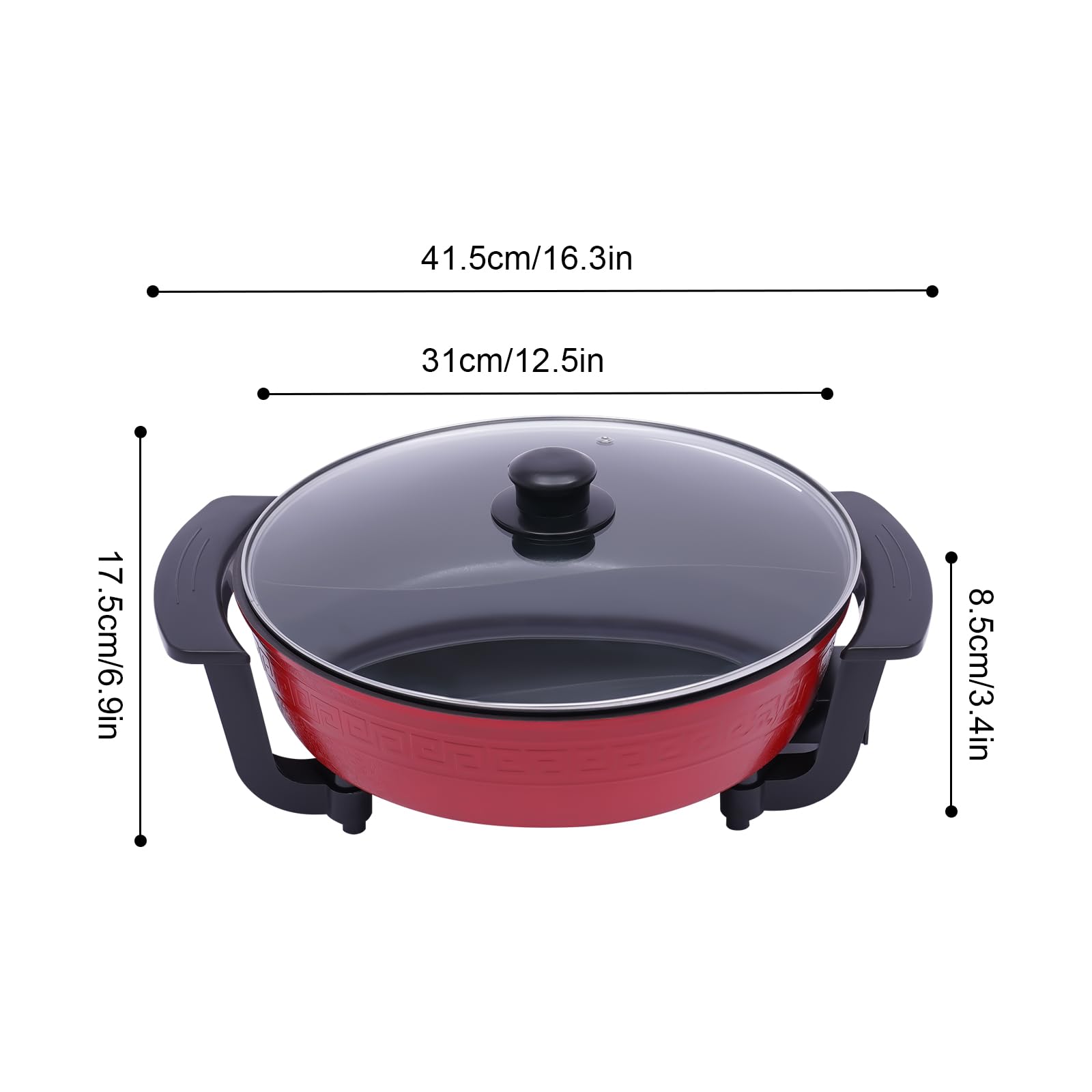 Electric Hotpot Pot with Divider - 6L Chinese Fire Pot for 8 People (1360W) | Electric Leak Protection, Energy Saving Function, Lid & Heating Base
