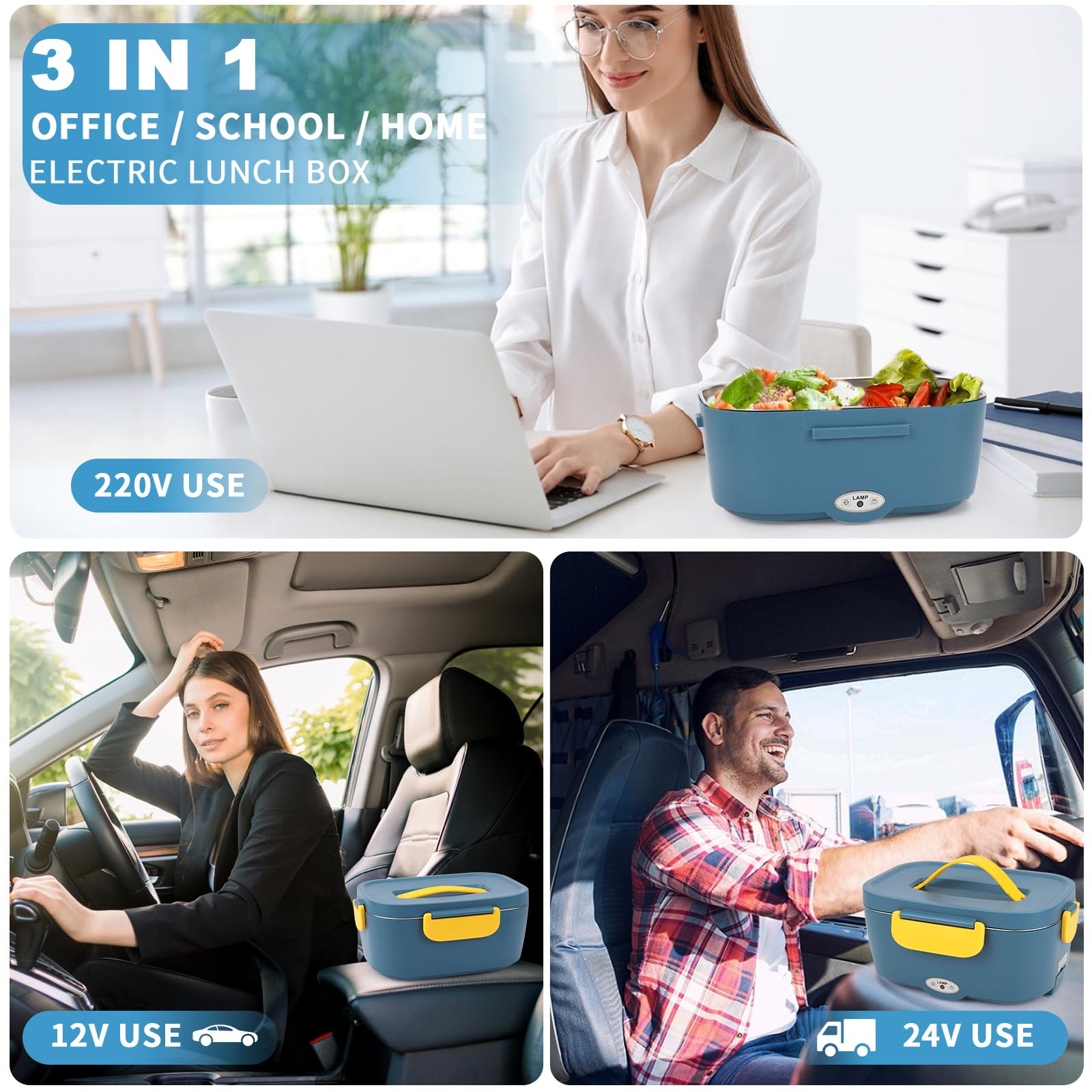 🍝 "【3-IN-1 Car & Office Dual Use】Say goodbye to fast food! Comes with two different plugs, one for work/home (220V) and another for car/truck (12/24V). Enjoy your warm & healthier homemade meals."